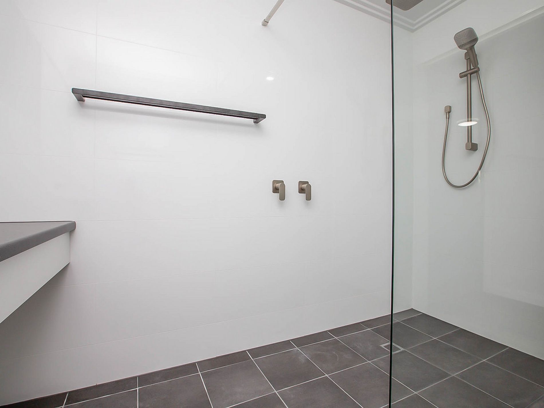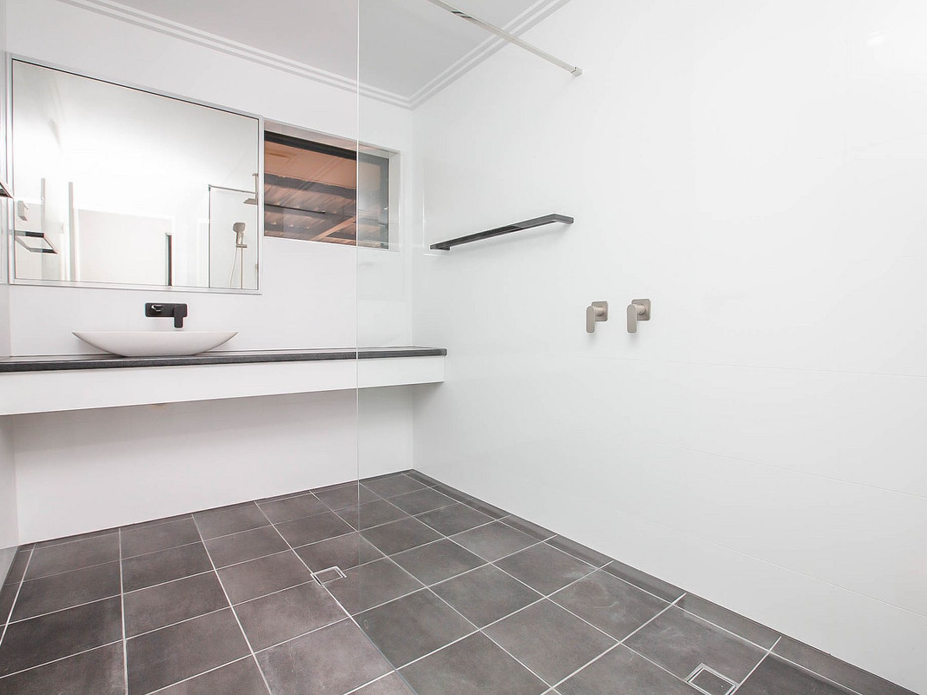 - STUNNING renovated bathroom - Floor to Ceiling White crisp wall tiles, Floating Stylish Vanity, massive 'Rainfall' shower head, matt black towel rails and fittings! This Bathroom is a TRUE Statement to its current owner and looks straight out of a design magazine!