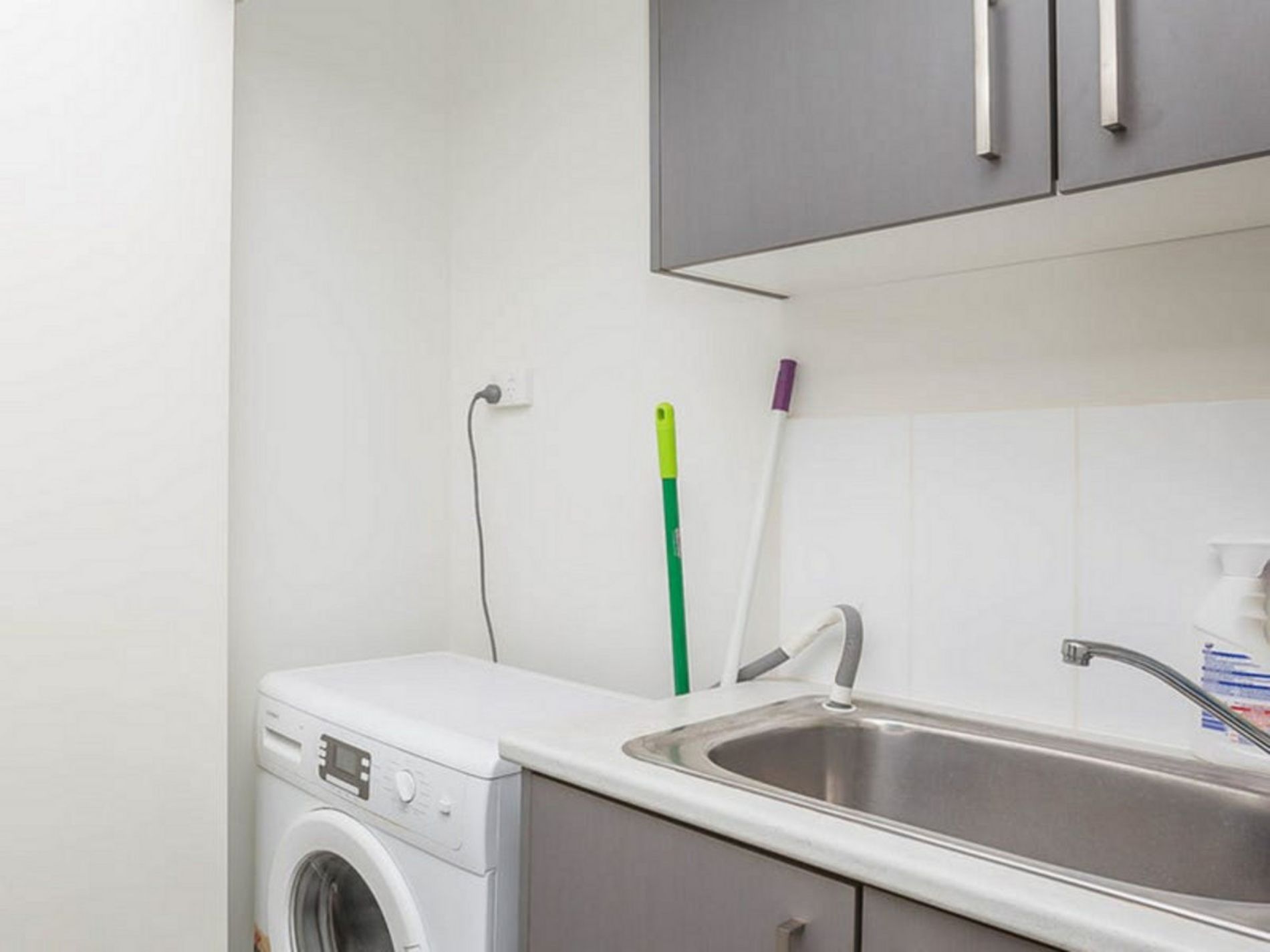 - Hidden "cupboard" style laundry