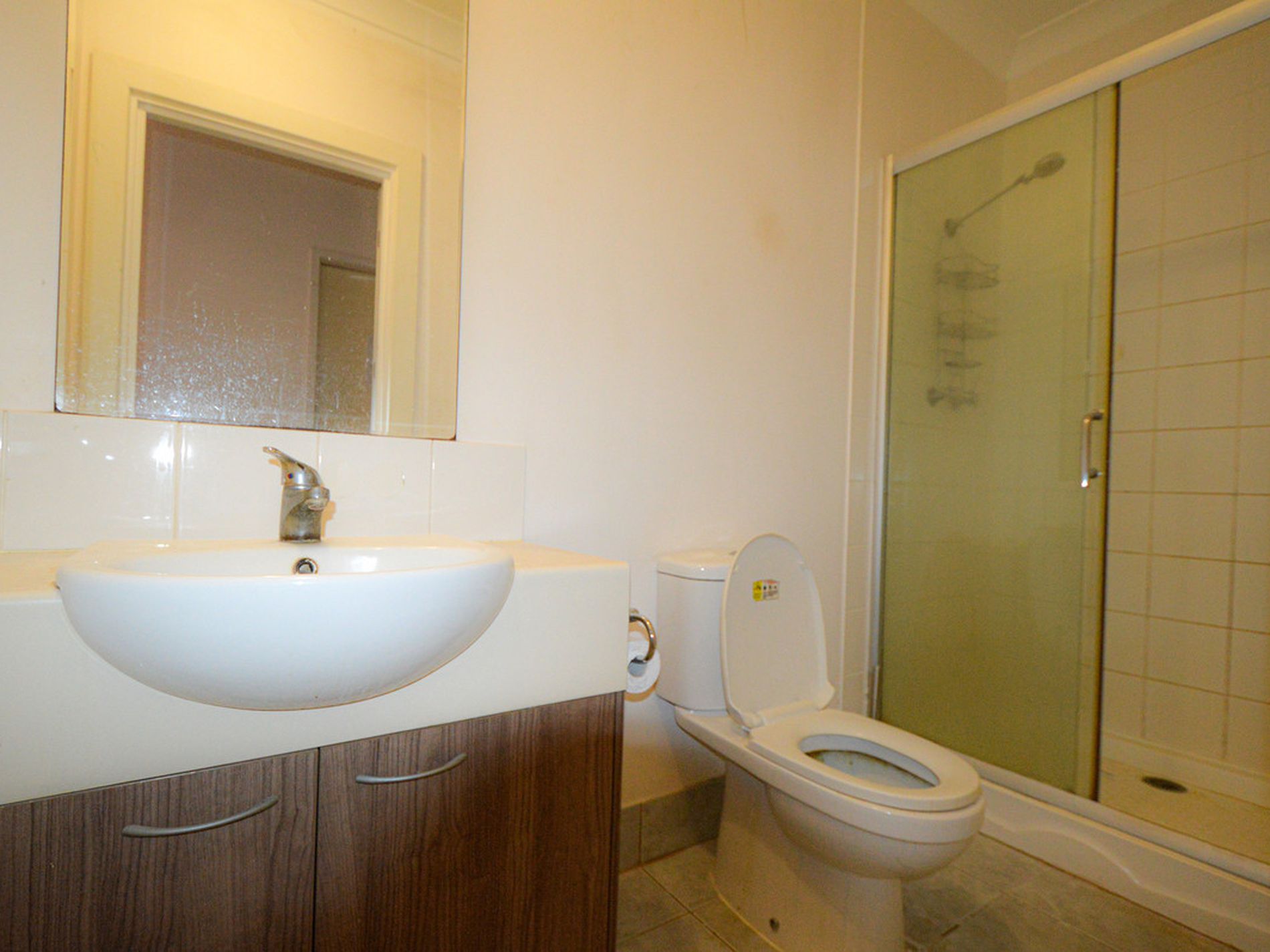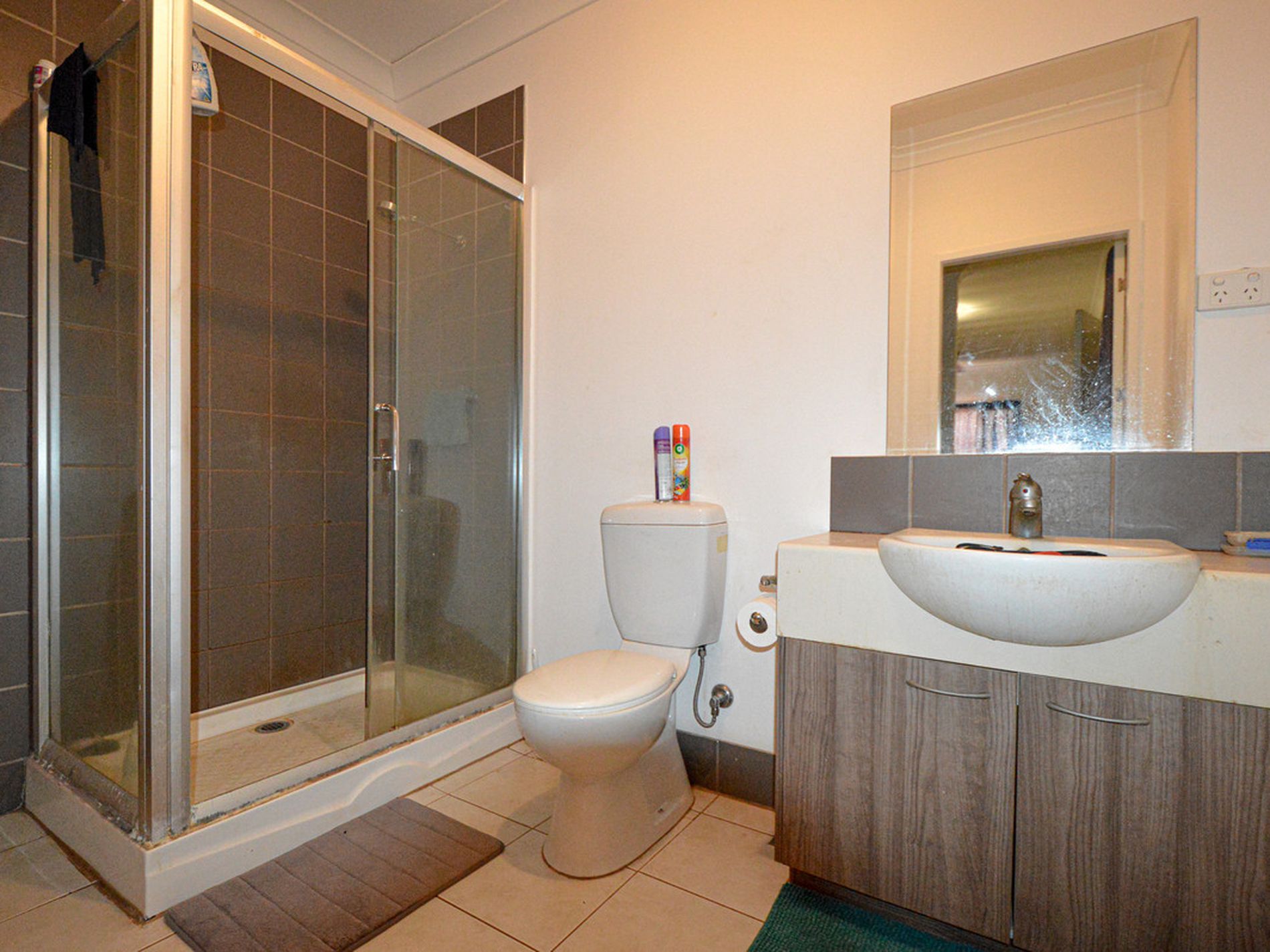 Main bathroom is modern and tiled