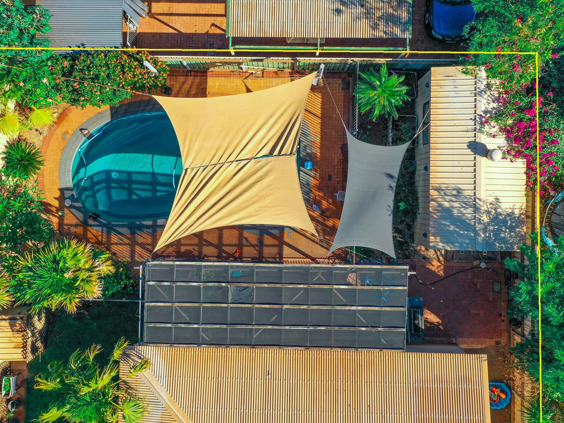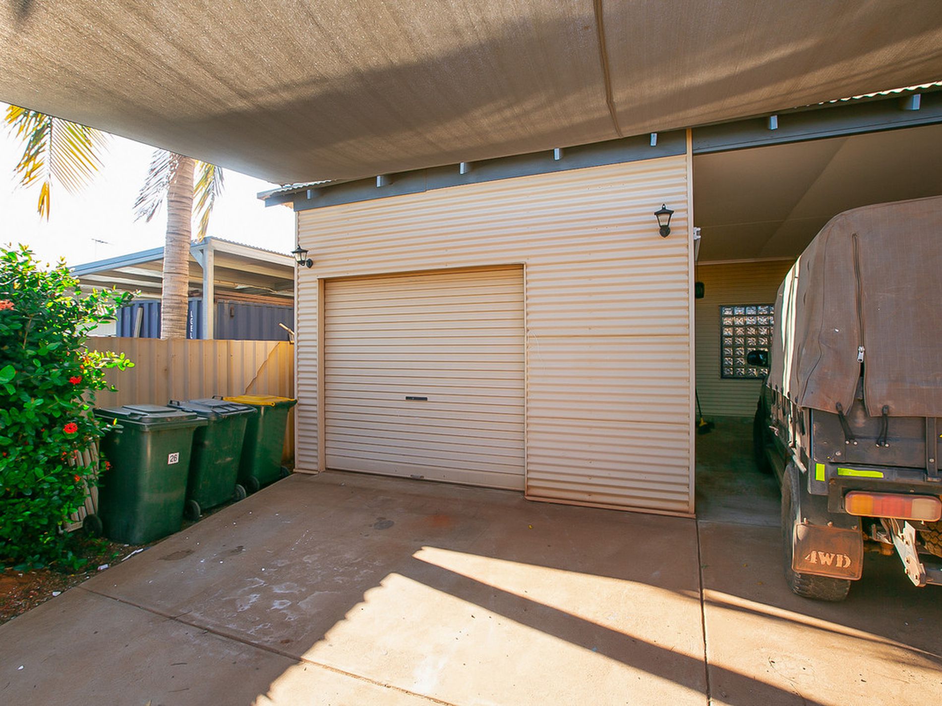 - Single under cover car port is additional to the lock up garage - also a large custom built shade sail allows for loads of shade and parking for multiple cars at the front of the home