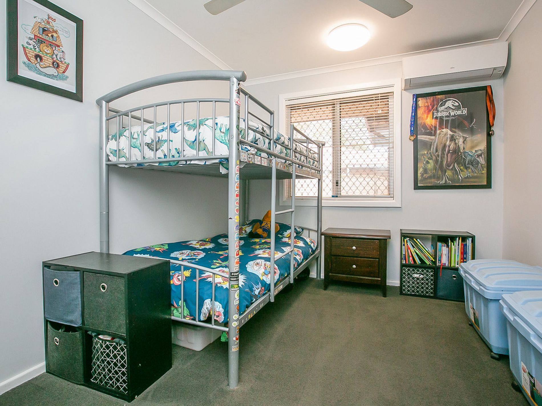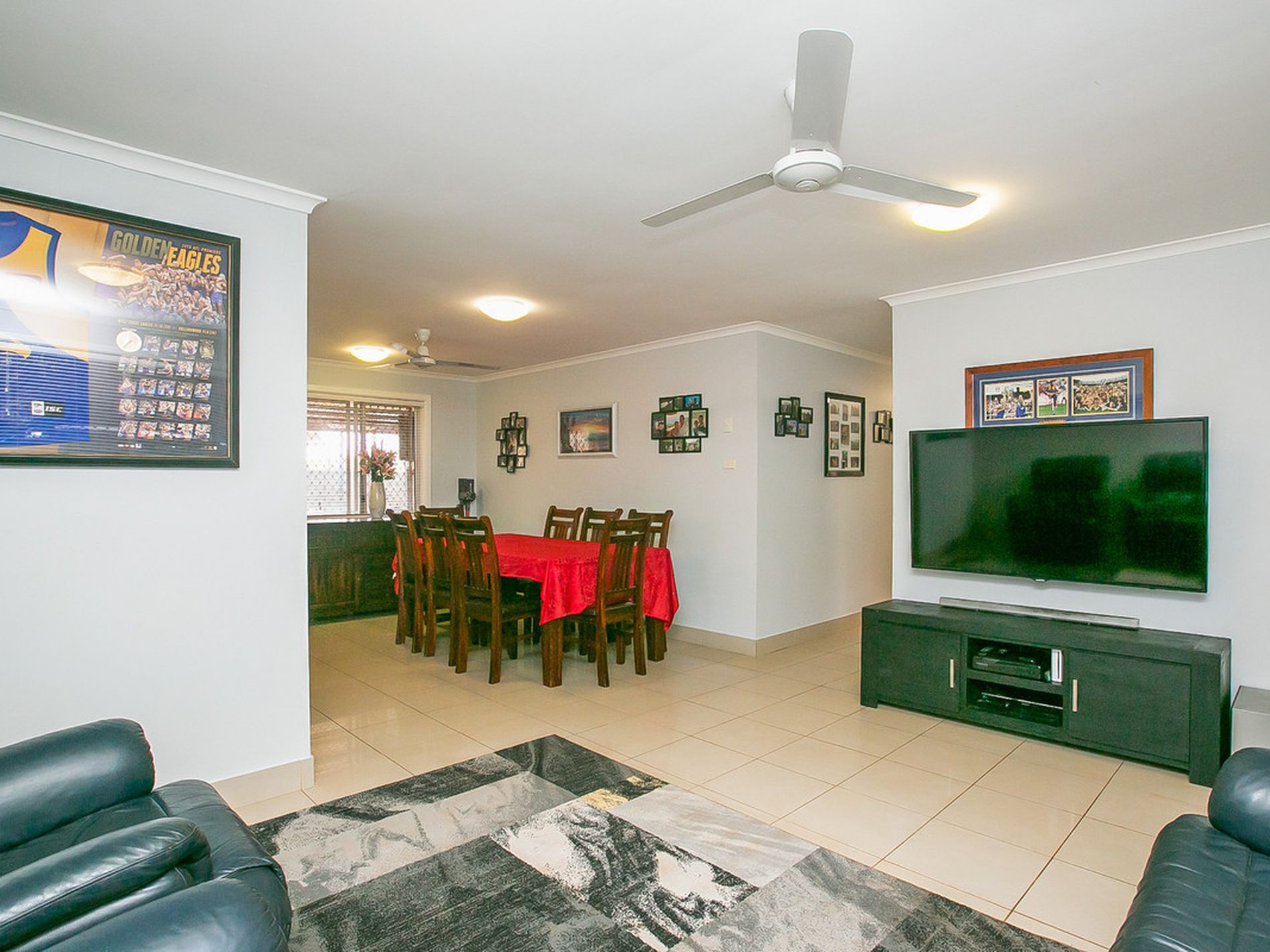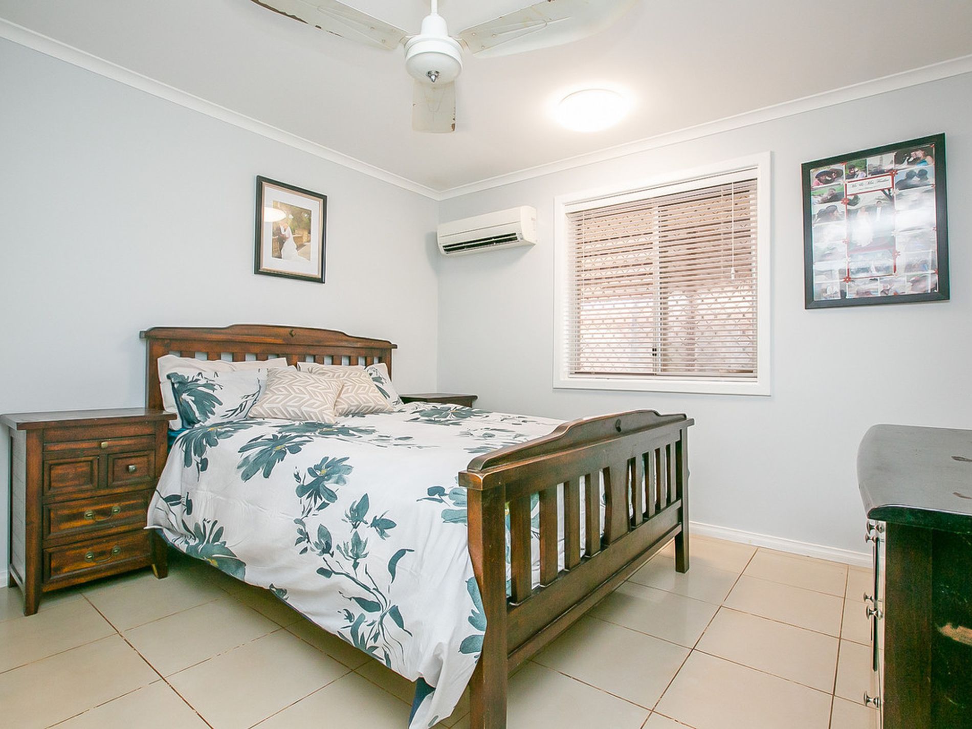 Neutral Wall Paint, Ceiling Fans, Split system aircons, quality window treatments and hardy floor tiles (new carpet in bedrooms) throughout