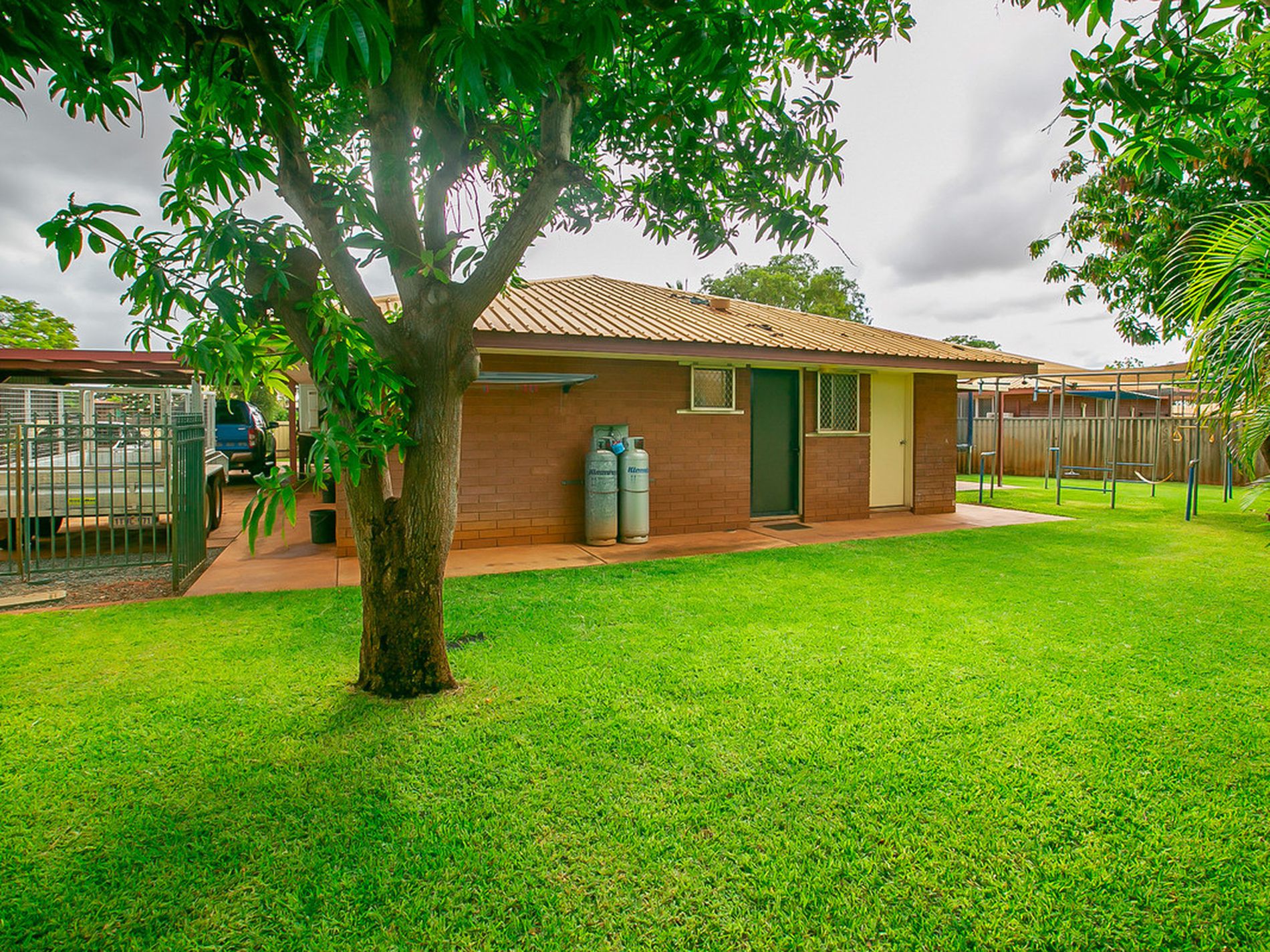 Multiple "Fruiting" Mango Trees, loads of well established tropical palms - this garden is Low Maintenance but super impressive - allowing a real "tropical" feel about it - whilst adding "privacy" to the block!