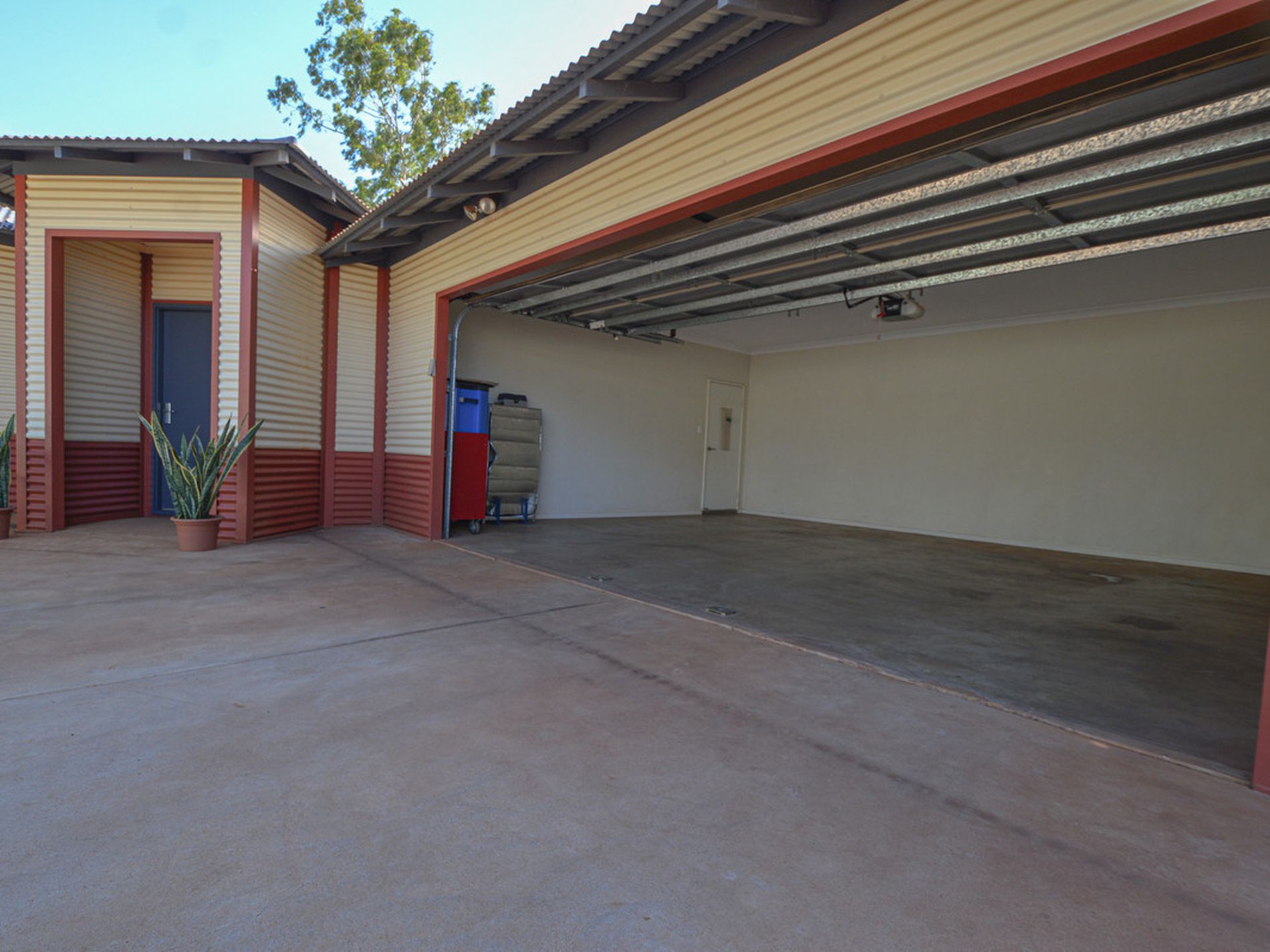 Large garage with single automatic roller door for two Cars