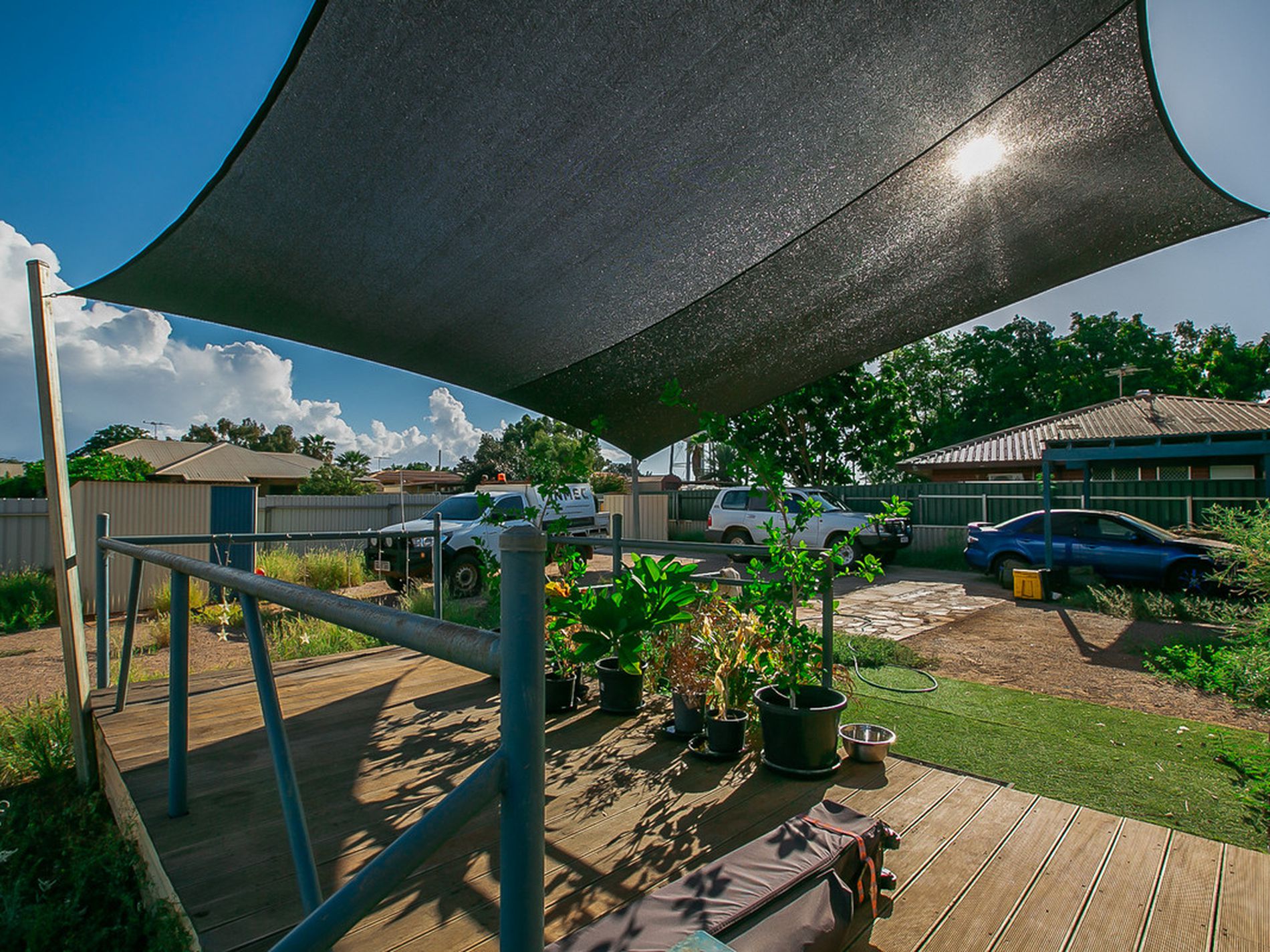 - Raised deck comes off the front of the home and has a shade sail for sun protection - this is a great space for enjoying an afternoon BBQ
