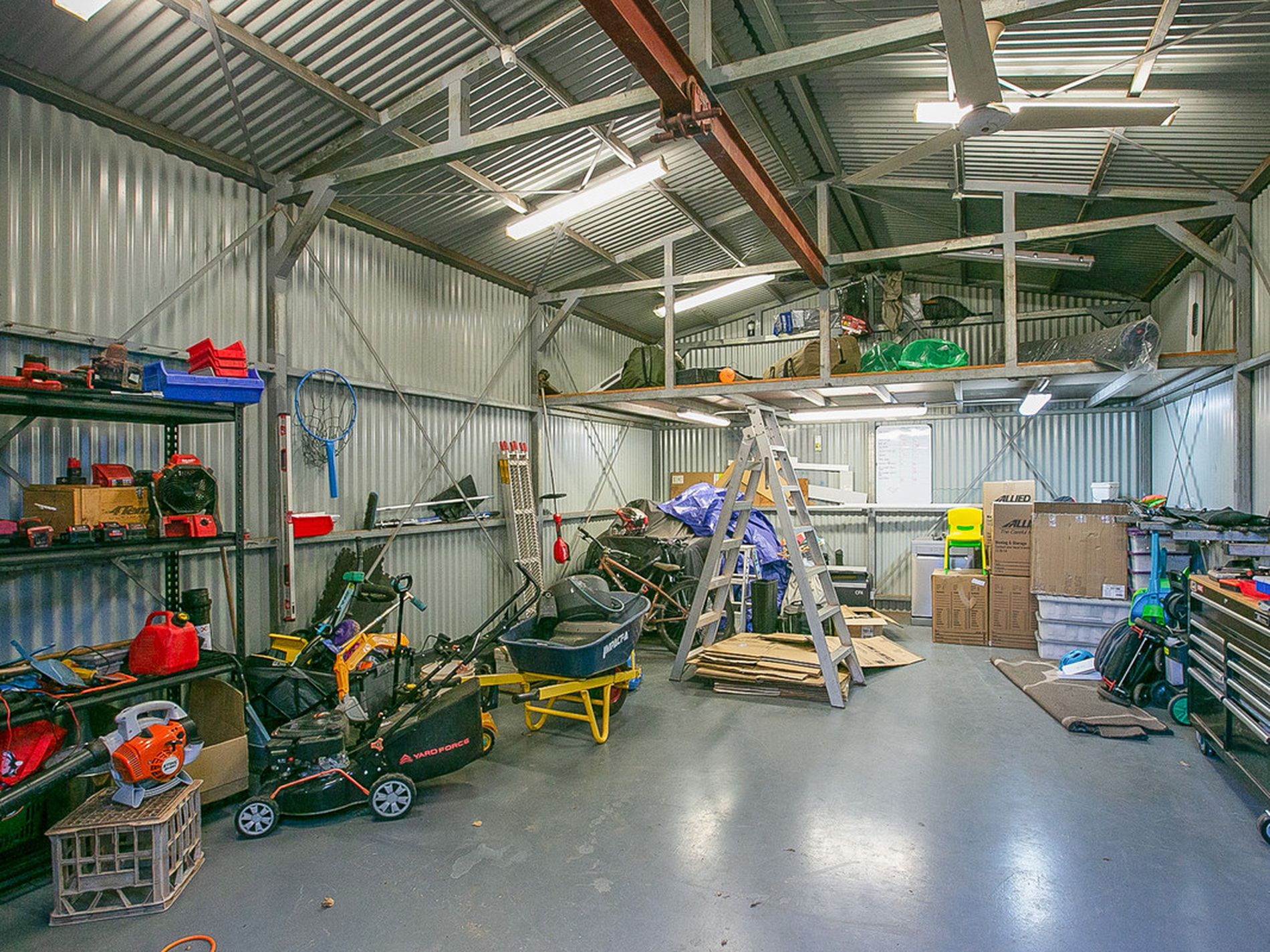 - MASSIVE Shed/Workshop! Massive double doors allow for easy access. Workshop is fully powered and has the addition of a mezzanine and monorail! This is the IDEAL Man Cave for all the dads out there!!! THIS IS AN AMAZING SHED