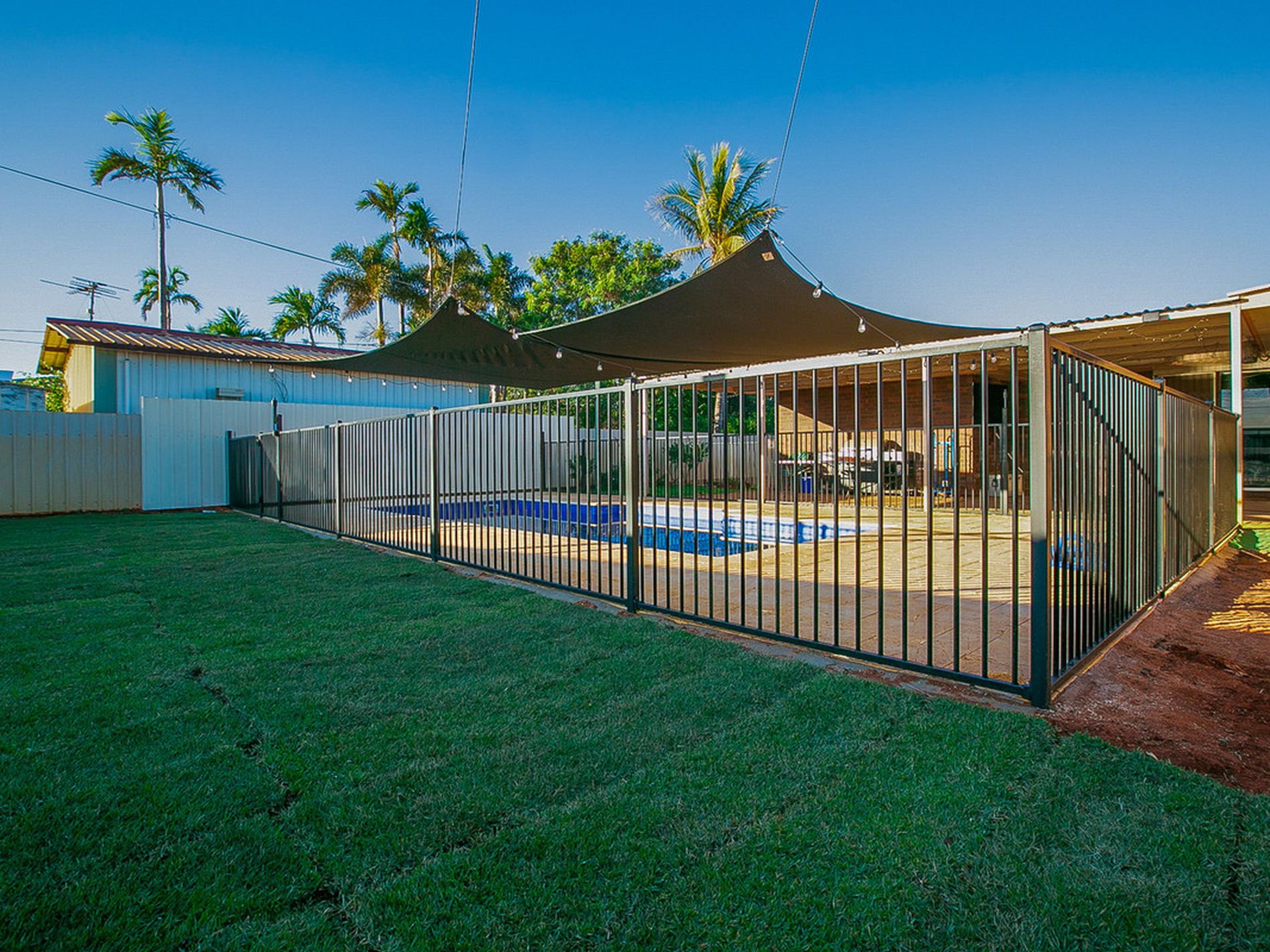 - BRAND NEW Sparkling below ground swimming pool - complete with shade sails, festoon lights and quality pavers - overlooking large back yard and rear entertaining area