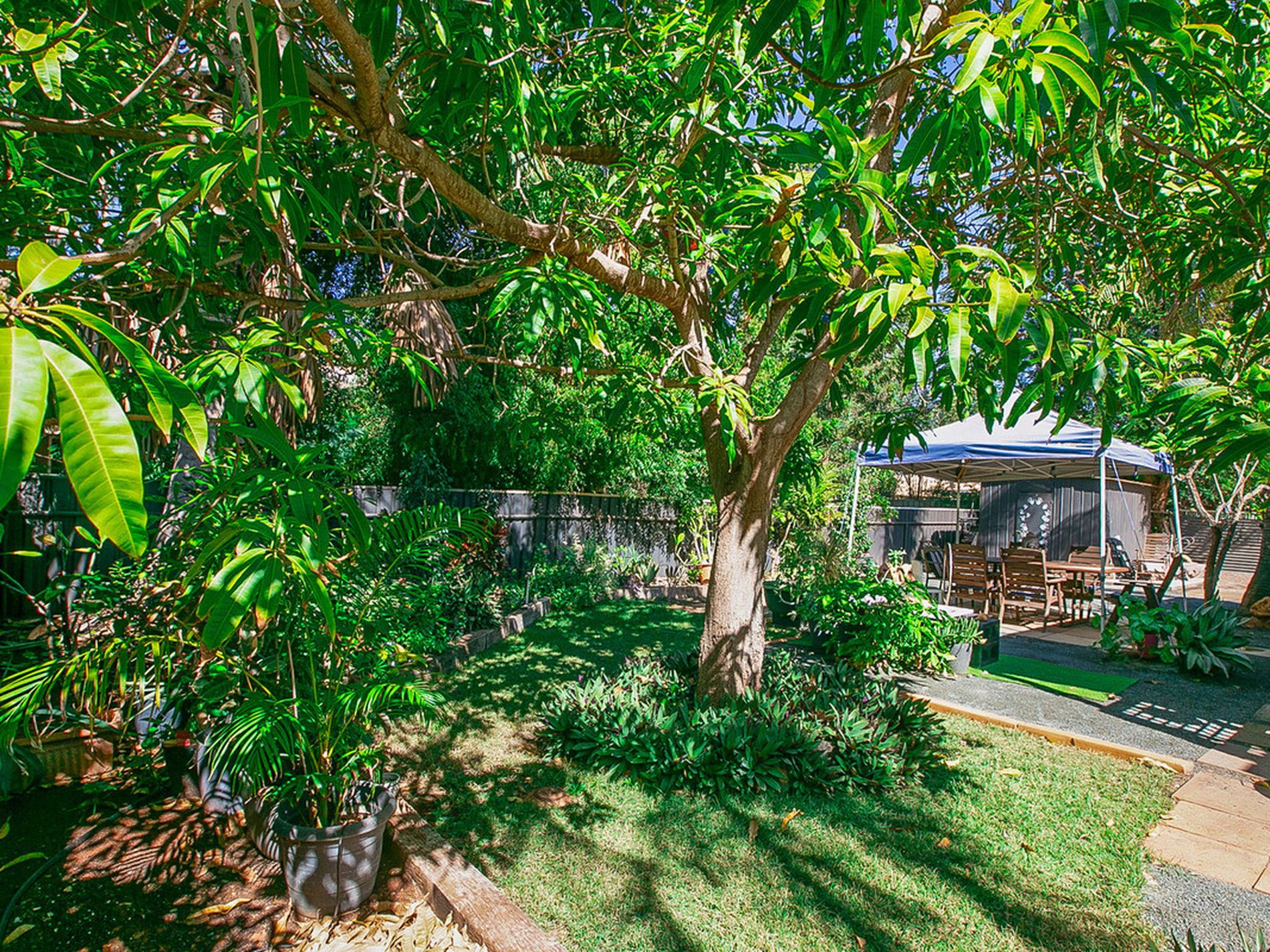 - Second gazebo set up is located on the "ground " level and is the centre piece of a stunning back yard - surrounded by more LUSH and well established tropical gardens. A massive fruiting mango tree is the main focal point but honestly this garden is AMAZING!