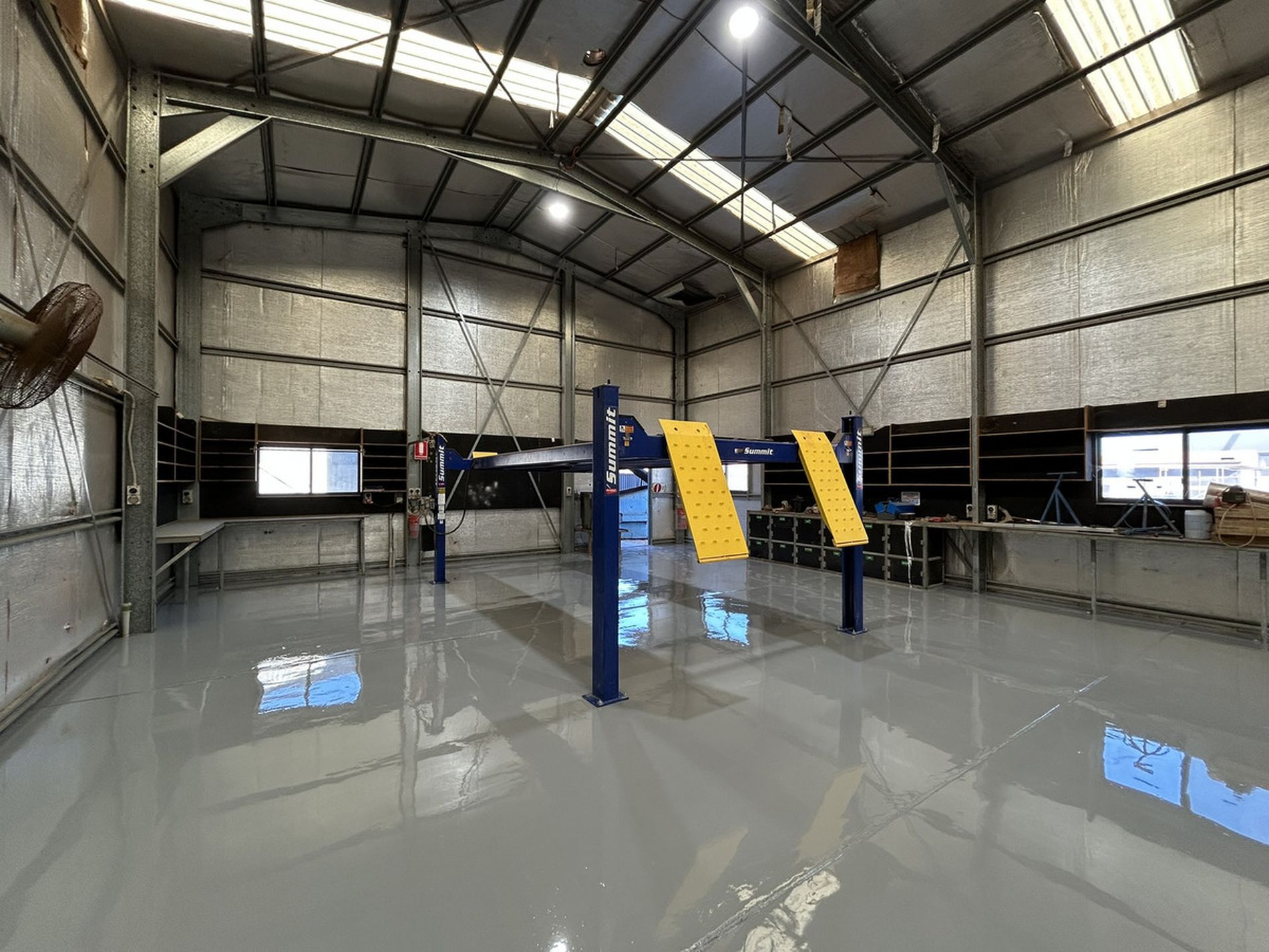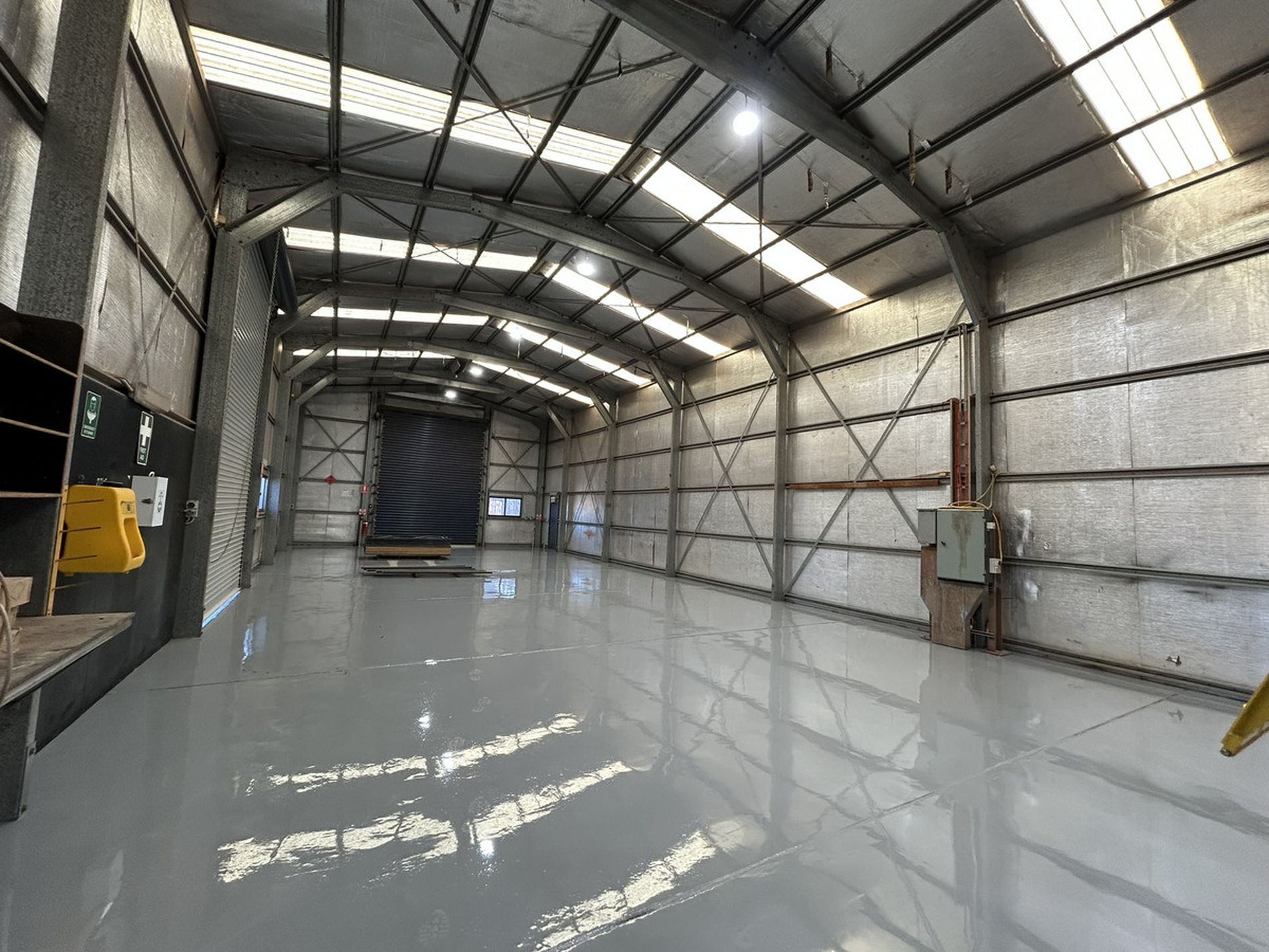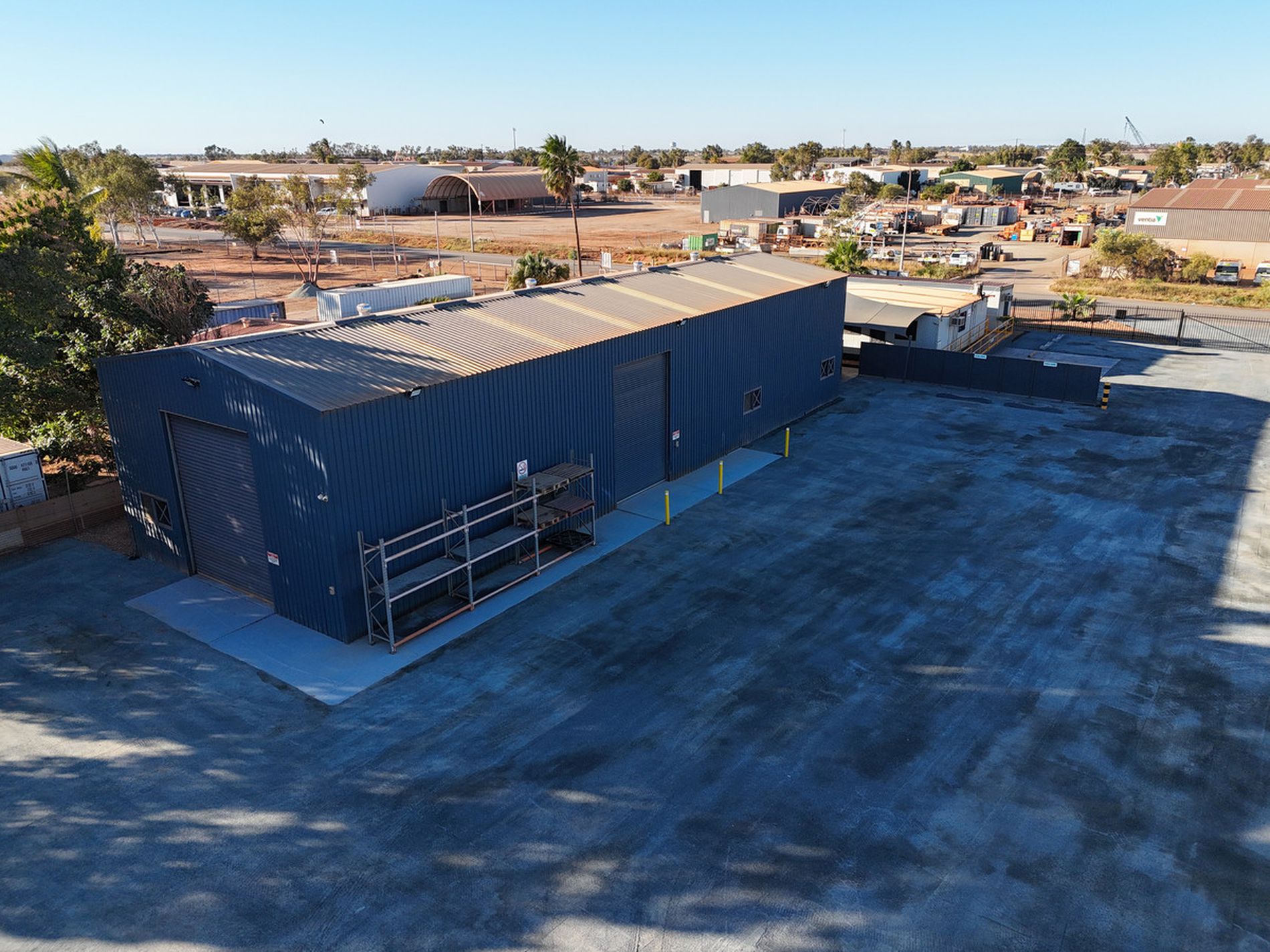 300 sqm (approx.) modern colourbond workshop, side and rear roller doors, racking
