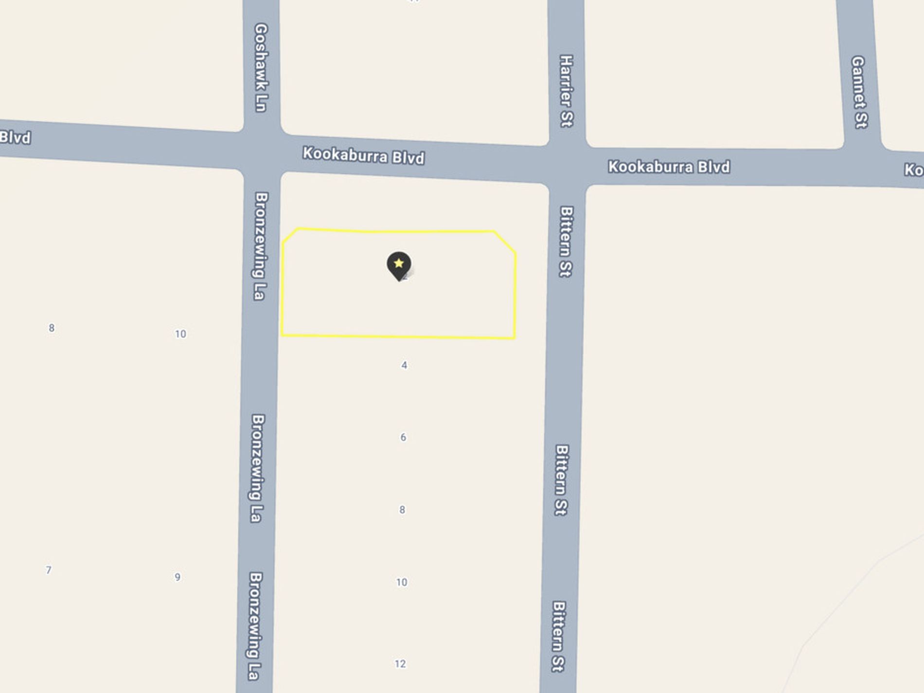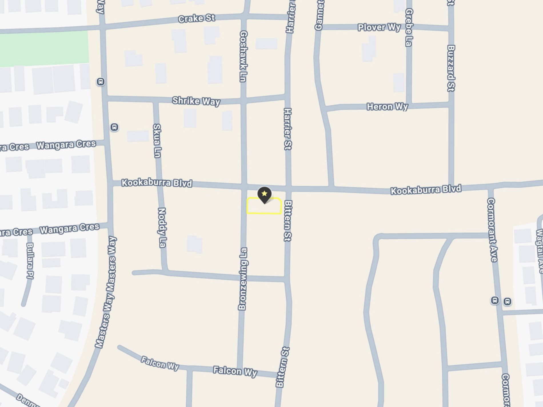 Blocks on Pundul, Minderoo, Coppin, Haig, Brodie, Buoy, McKenna, Catamore, Harrier, Masters, Stork, Kookaburra, Bittern, Stork, Buzzard Streets