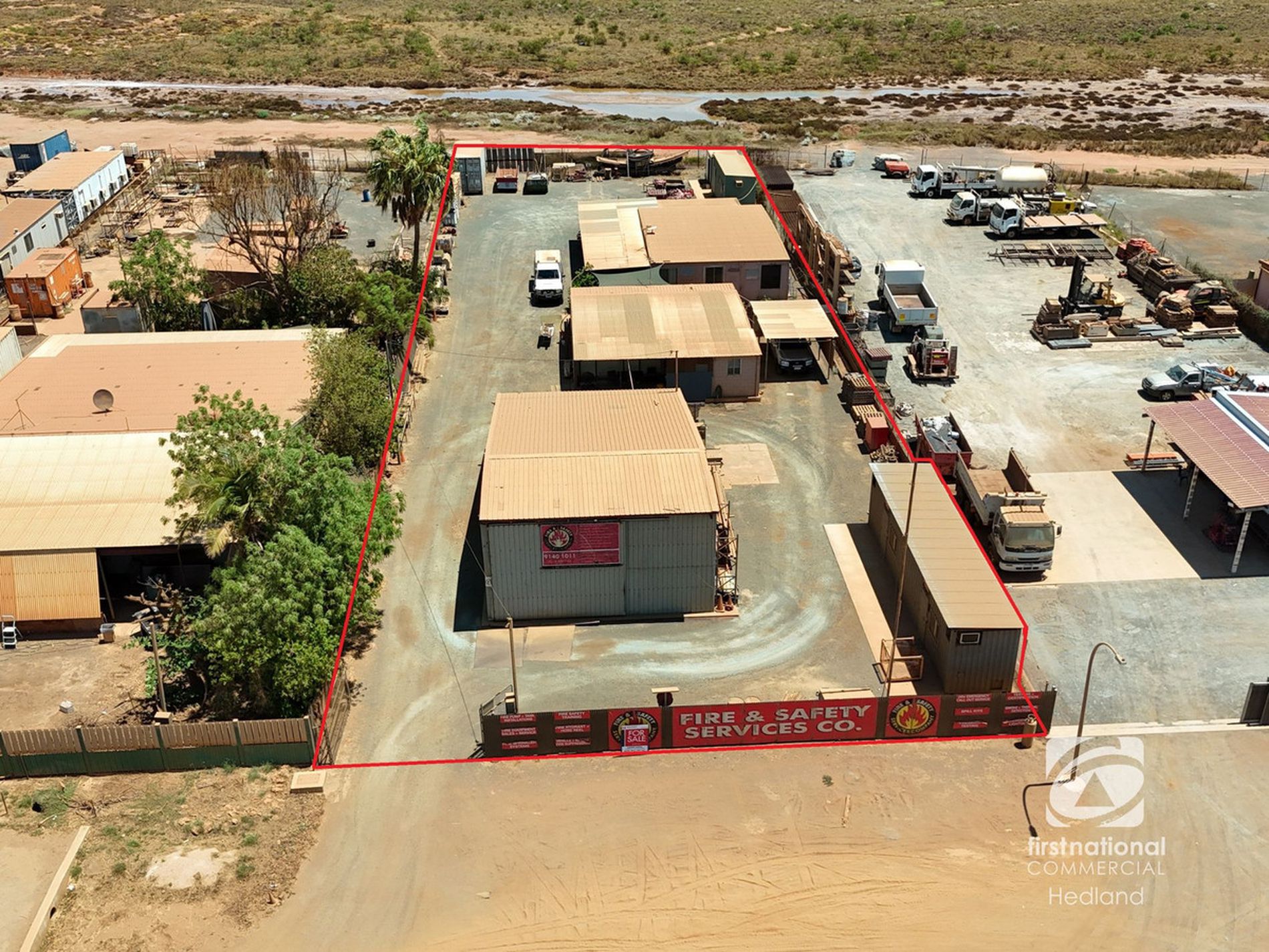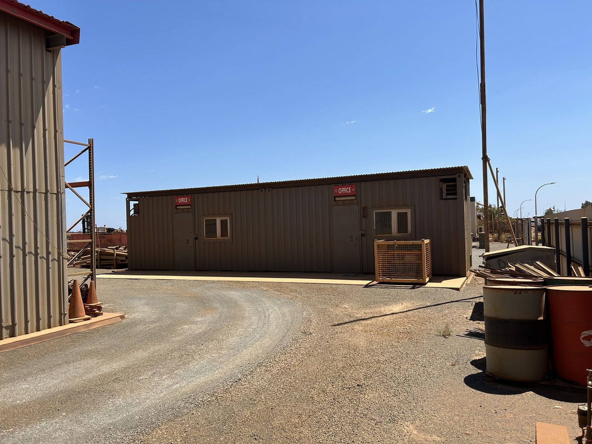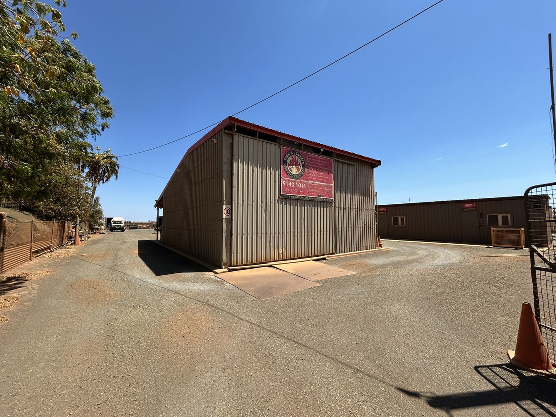The property is fully fenced and offers ample room for vehicle movement and turnaround, making it suitable for a wide range of industrial or commercial operations.