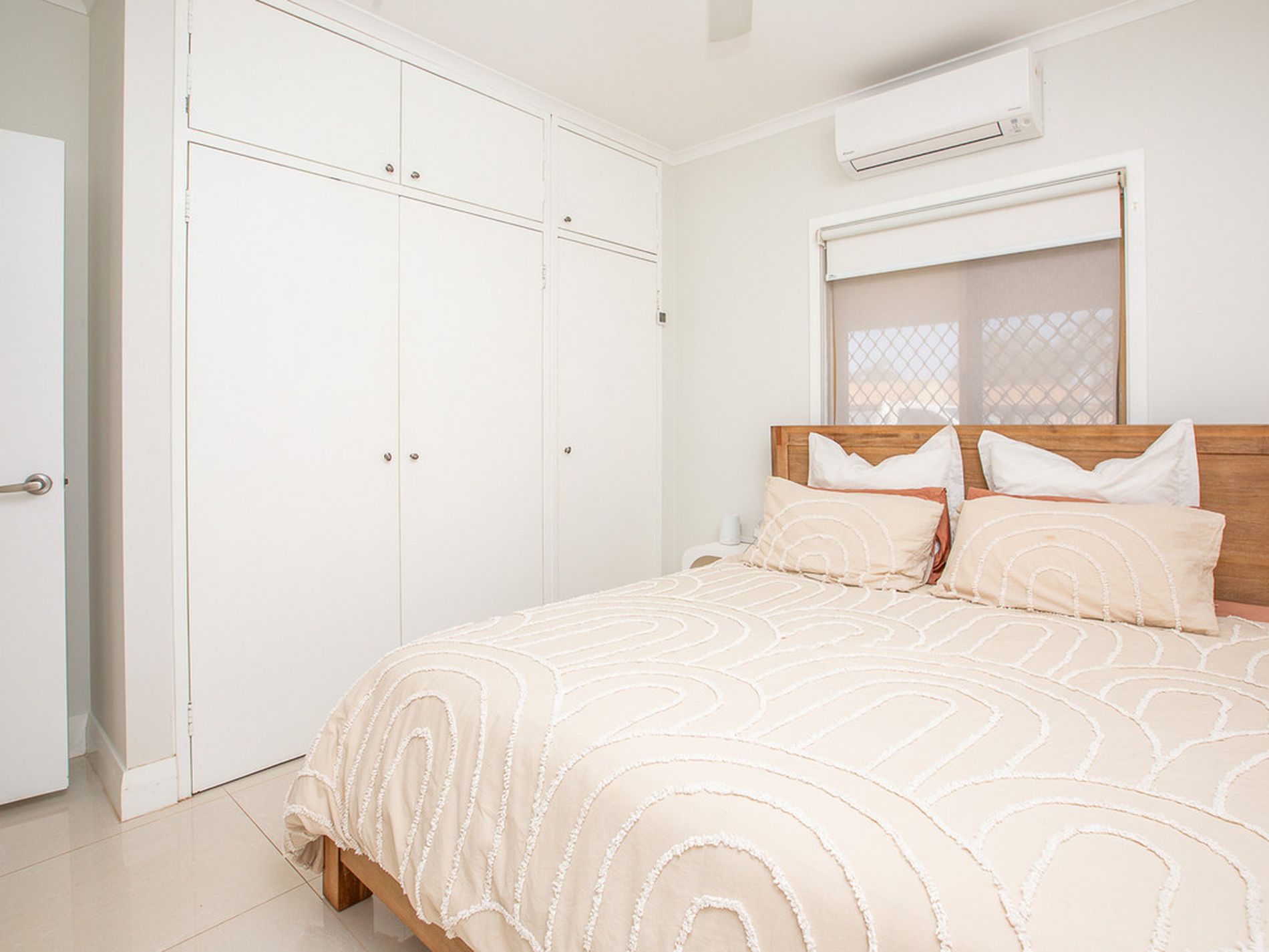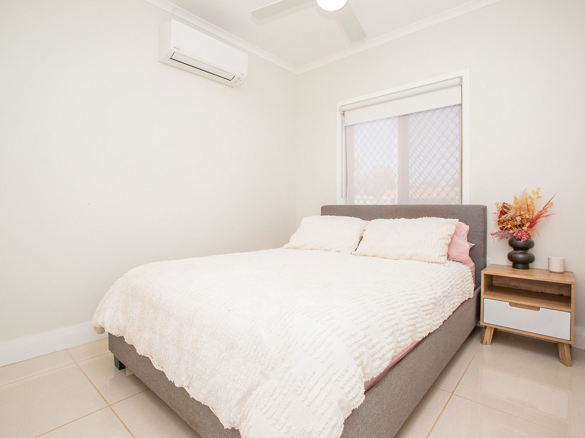 Three generously sized bedrooms, all with built-in robes, quality flooring, fresh paint, ceiling fans, split-system air conditioning, and quality window treatments