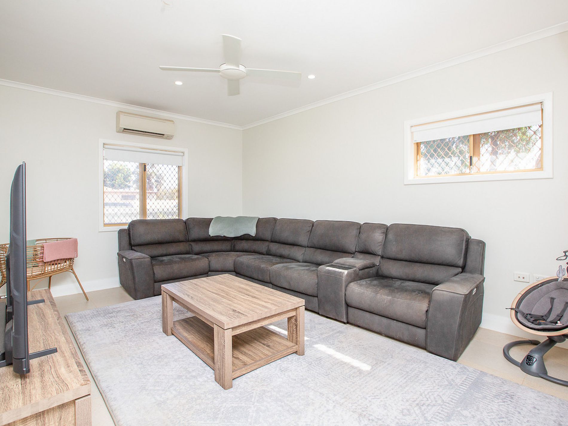 Quality flooring, split-system air conditioning, stylish ceiling fans, fresh paint, downlights, and modern window treatments throughout