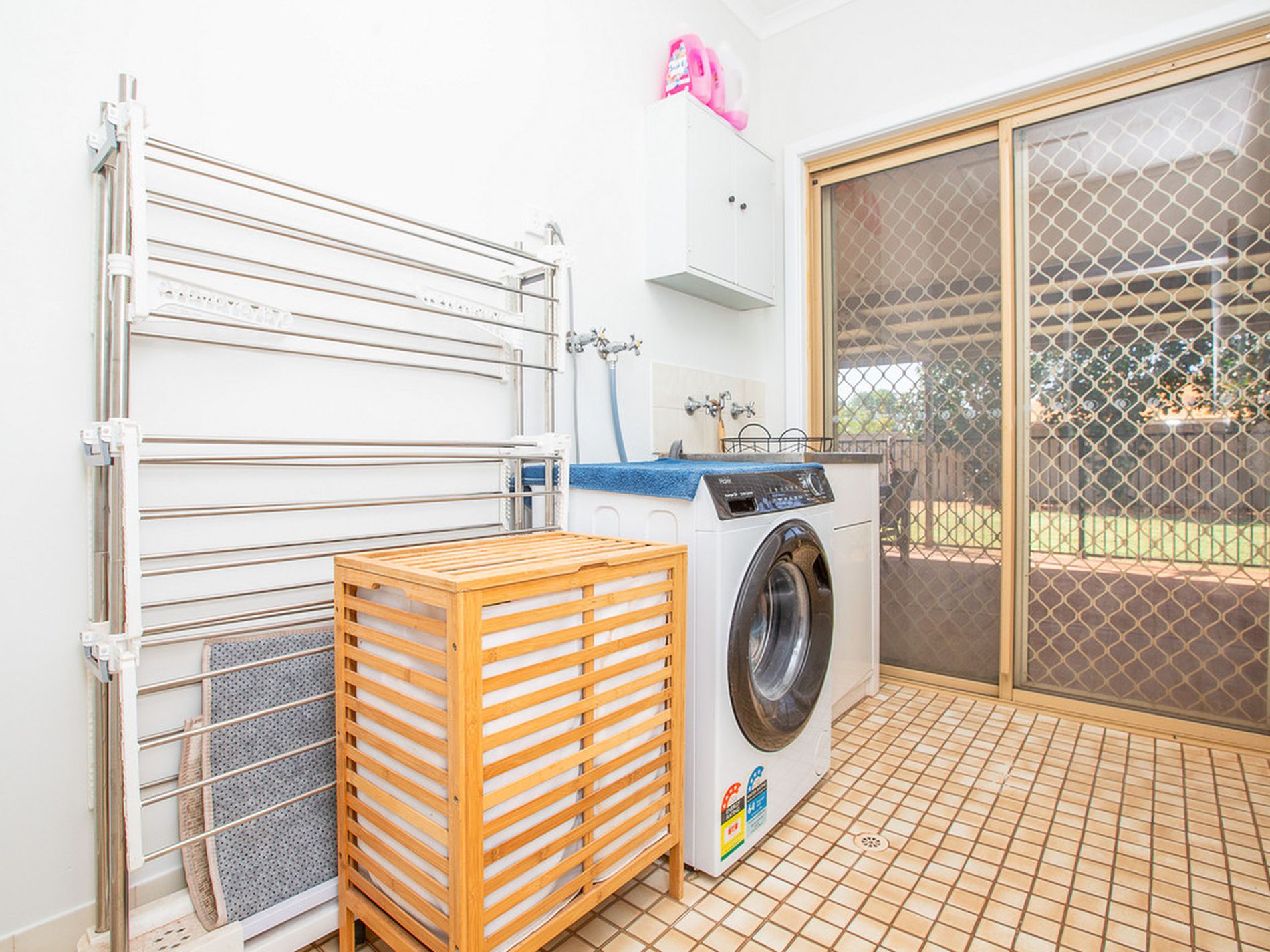 Large, functional laundry neat and tidy, with scope for future enhancement