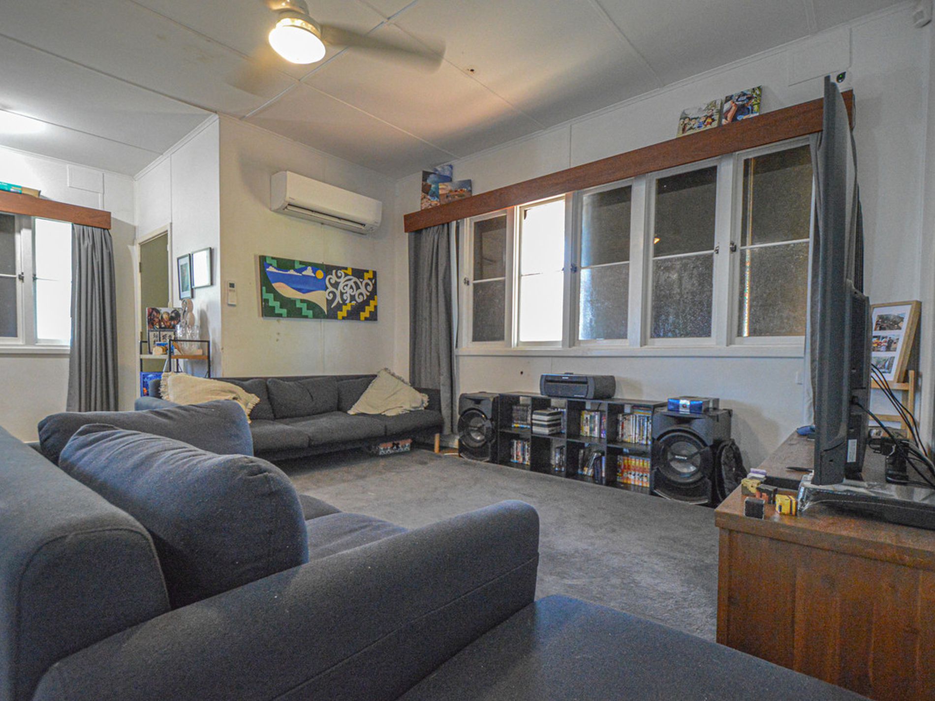 The home features tiled living spaces for easy maintenance, complemented by carpeted bedrooms for comfort. An internal bar area adds a unique entertaining element, while the flexible layout allows for separation between living zonesideal for busy households. Enjoy full air conditioning and ceiling fans throughout.