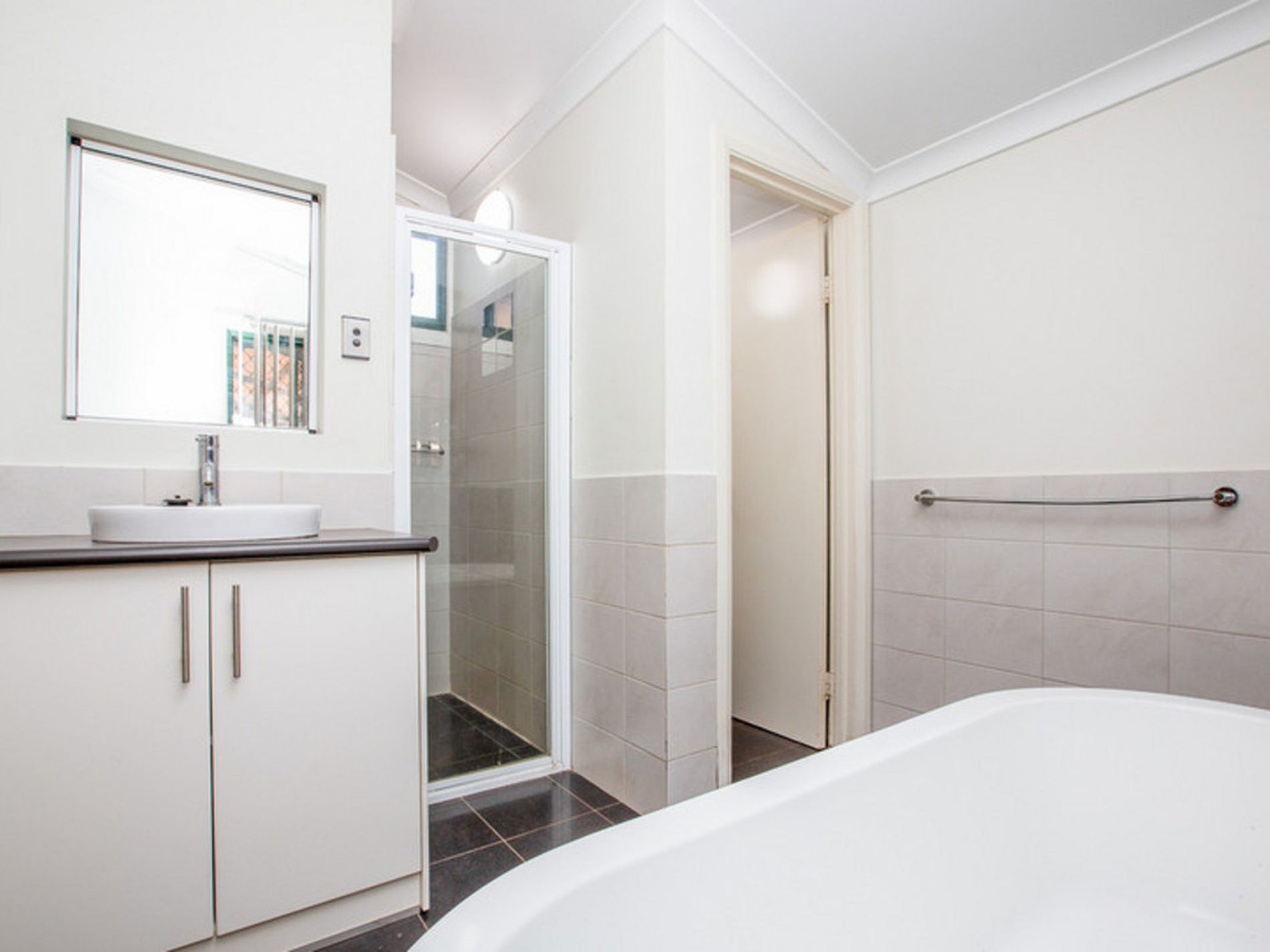 - Brand New Bathroom! LOOK AT THAT BATH!!! OMG - I NEED this in MY LIFE! A massive free-standing bathtub, separate shower, vanity and toilet - this is one beautifully designed bathroom!