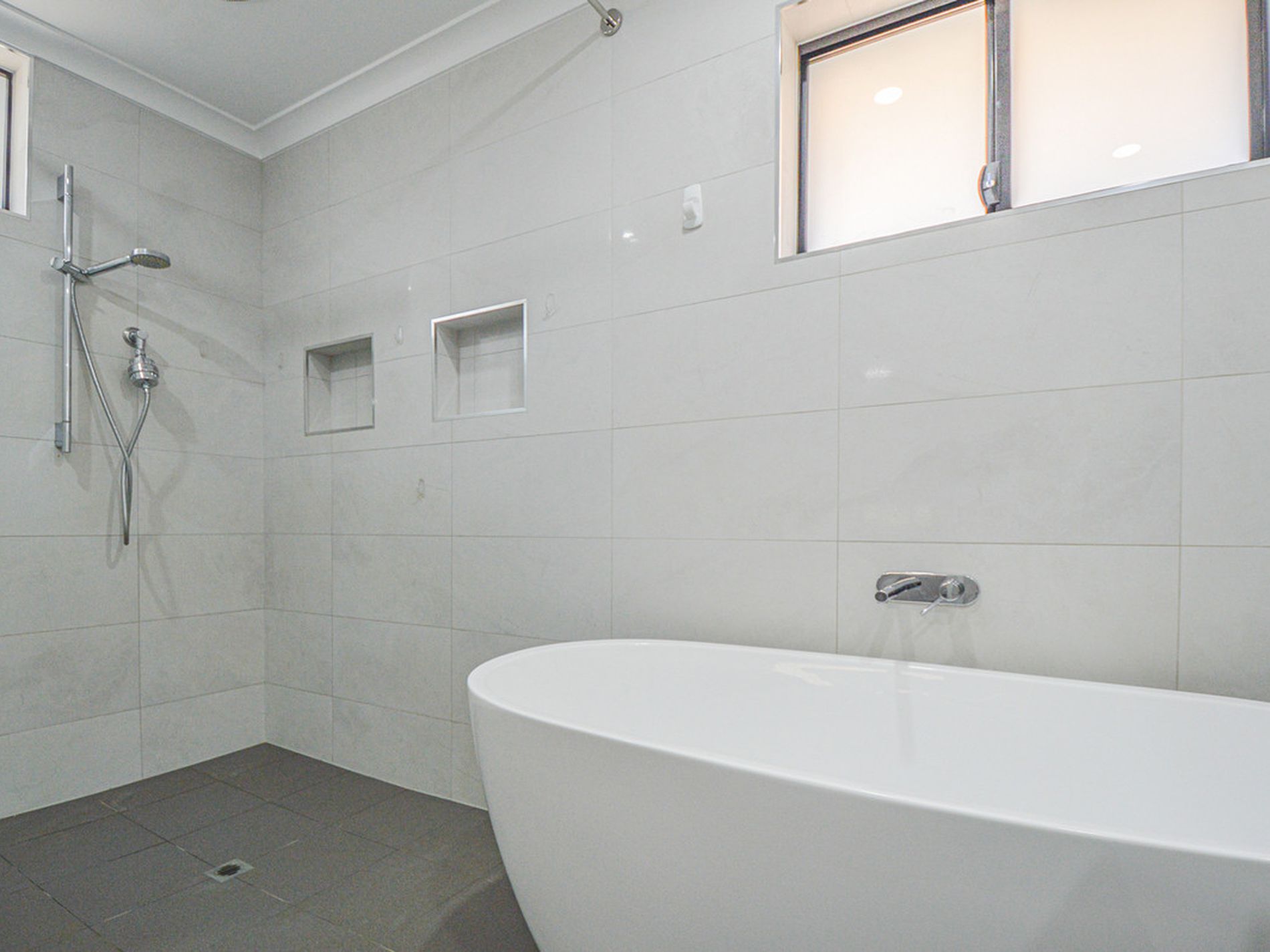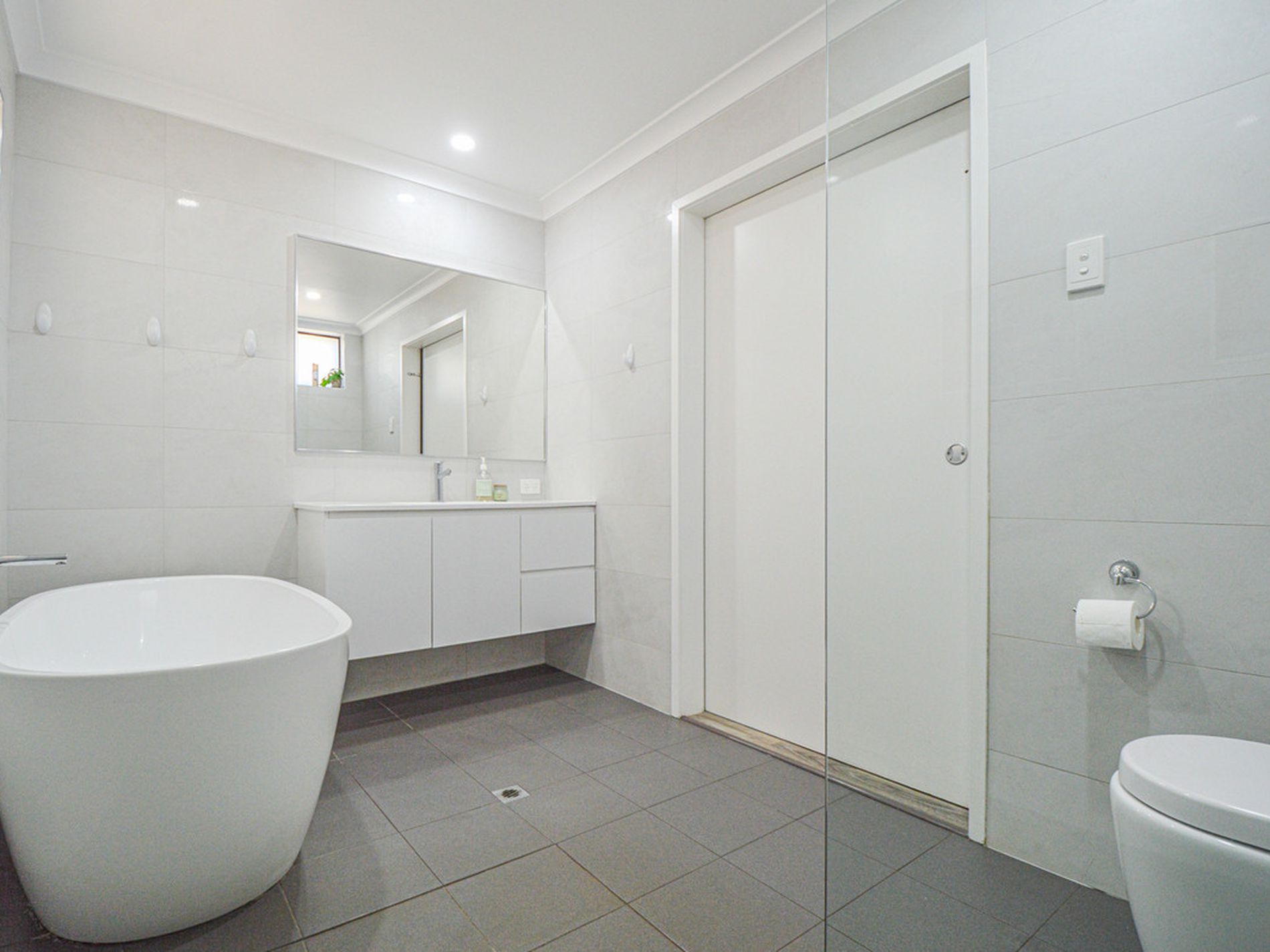 - STUNNING and WOW Factor BRAND NEW renovated bathroom - complete with full size free-standing EGG bathtub, Large separate shower, toilet, Floating vanity, oversized mirror and complete with super modern and stylish floor and wall tiles! This bathroom is WOW and is one to envy!