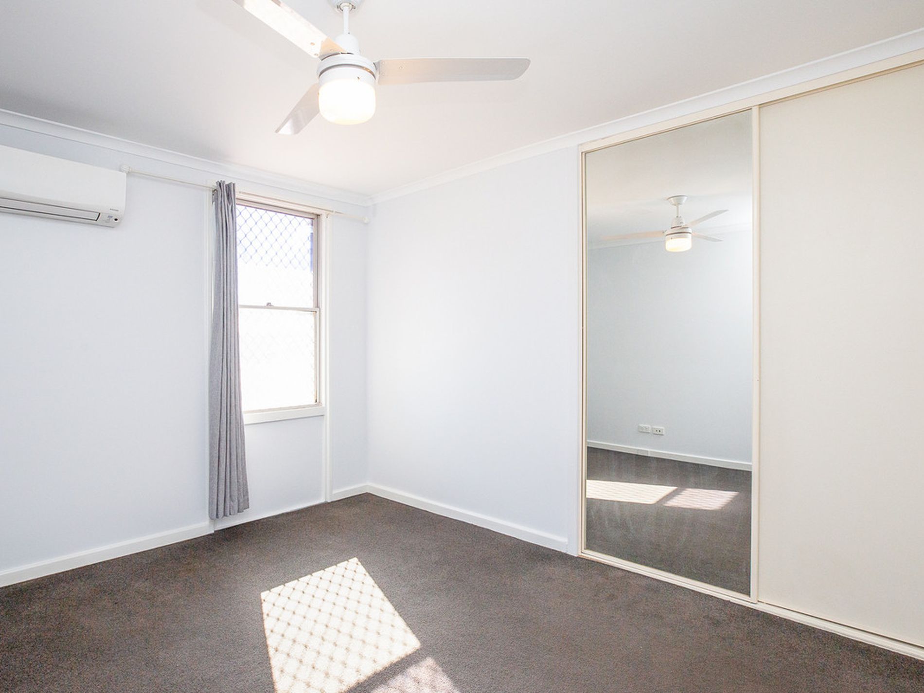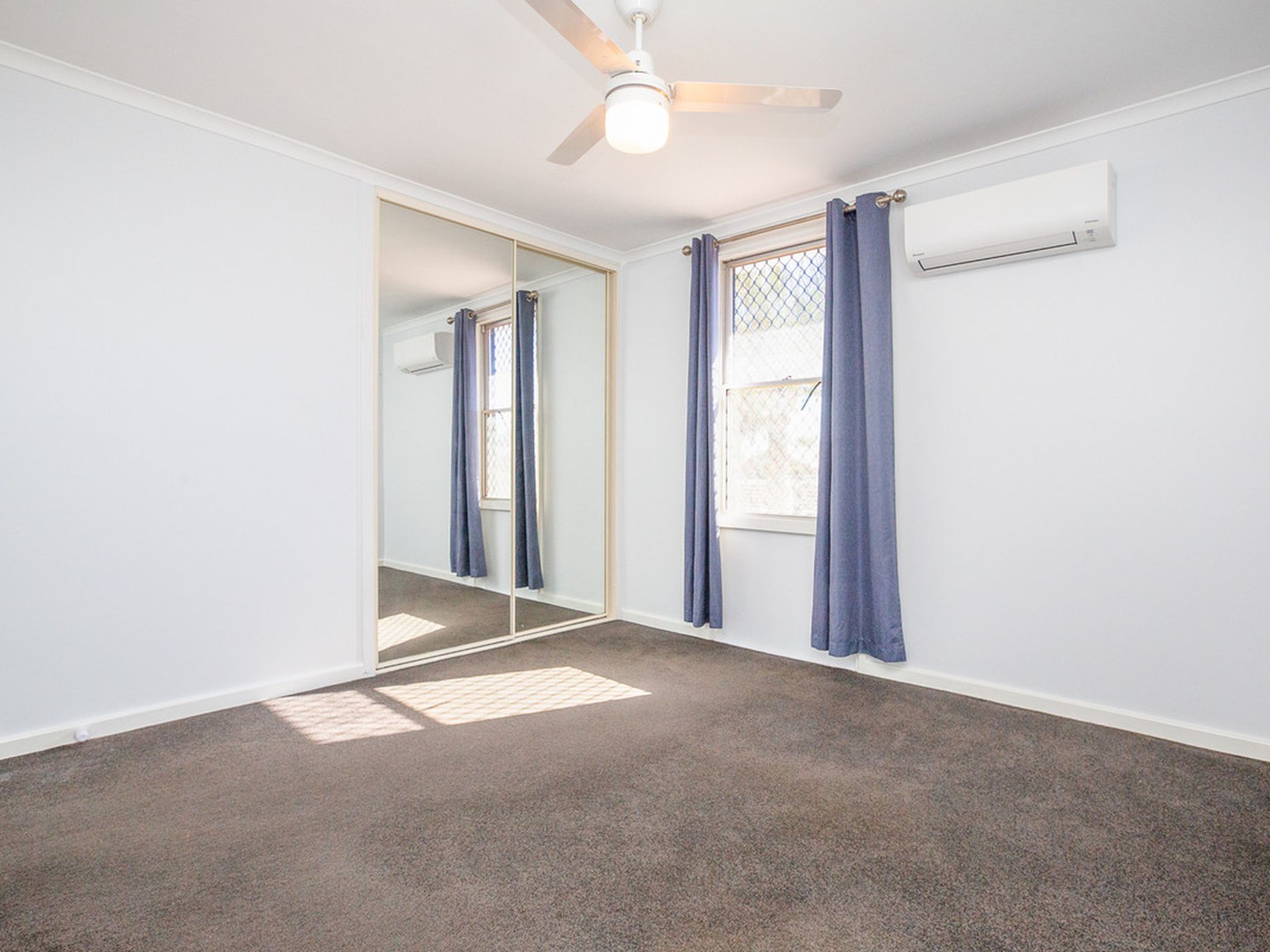 - Three well-sized bedrooms with ceiling fans, split system air conditioning, built-in robes, and window treatments