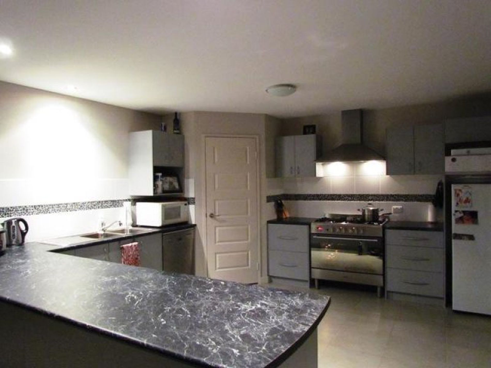 - Open plan kitchen, dining, living area