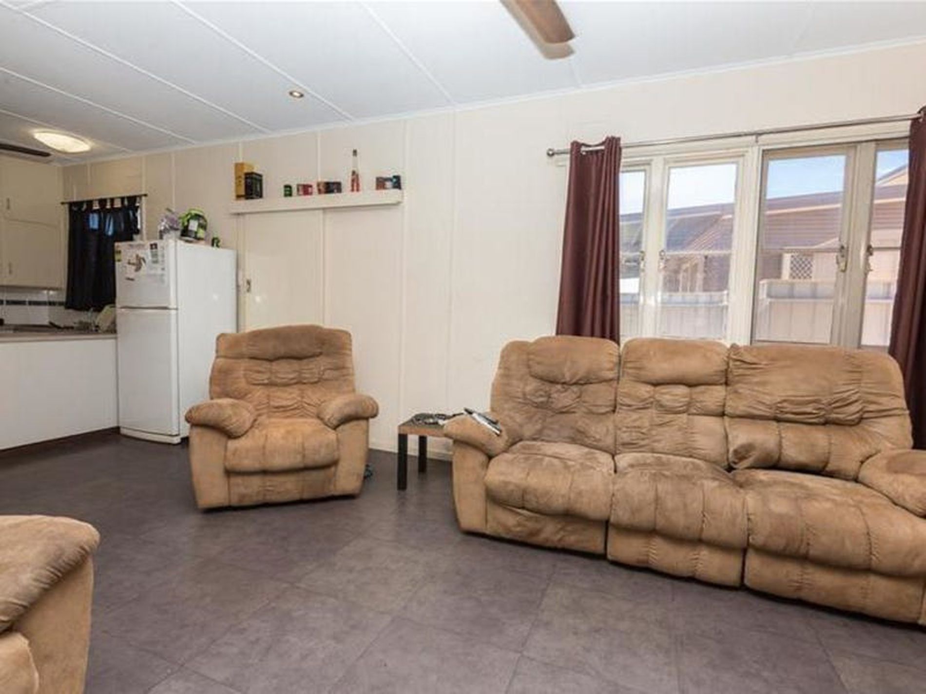 Vinyl floor coverings in living areas, carpets to bedrooms