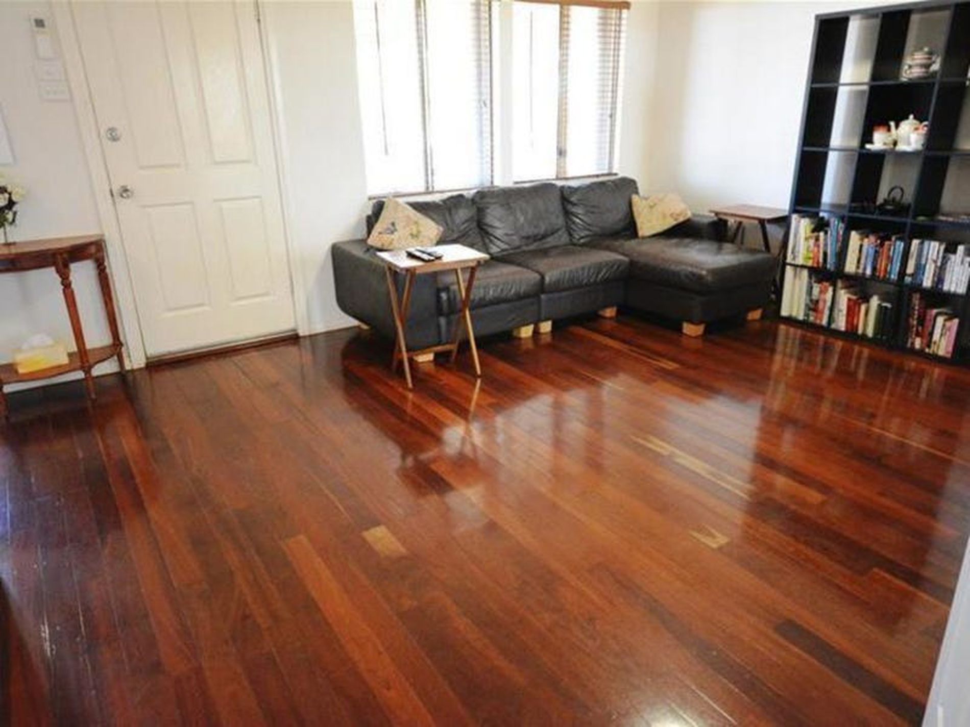 Highly polished jarrah wooden floor boards