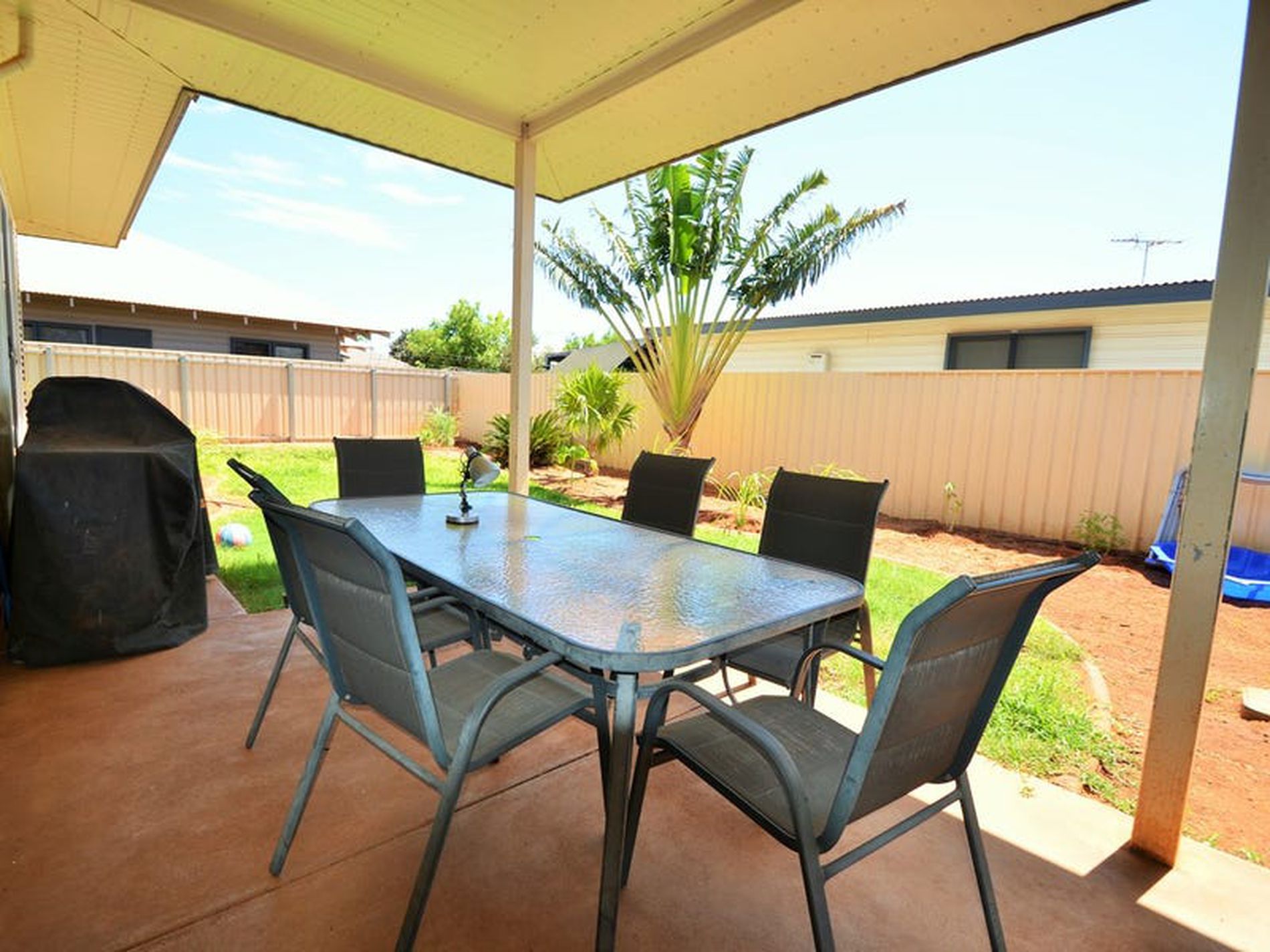 - Large outdoor entertaining area surrounded by tropical gardens