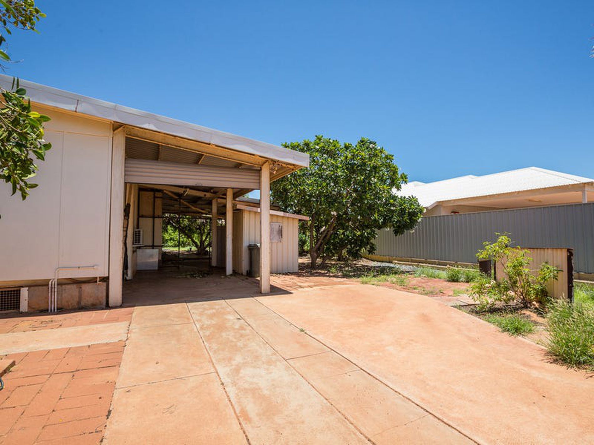 Carport with a roller door, storage shed