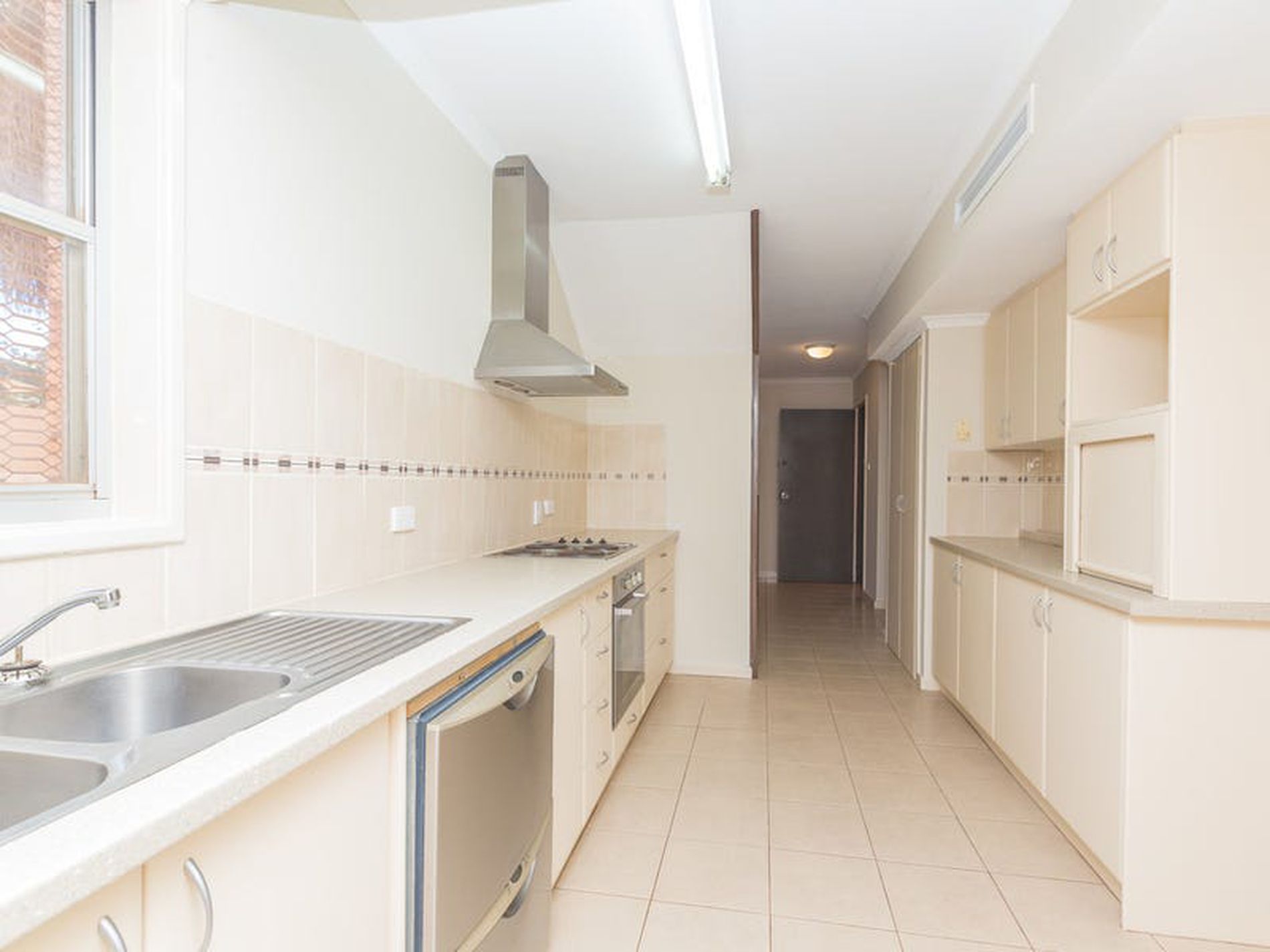 Newly tiled living, dining and kitchen areas