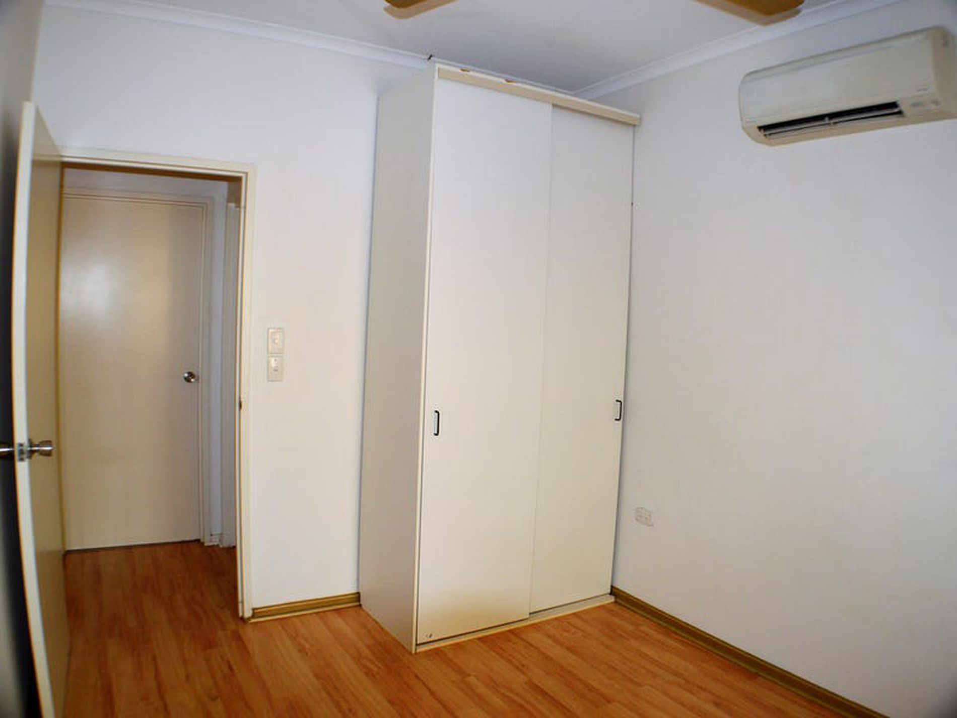 Modern wood look lino flooring throughout, with ample storage and an open plan lounge and dining area.