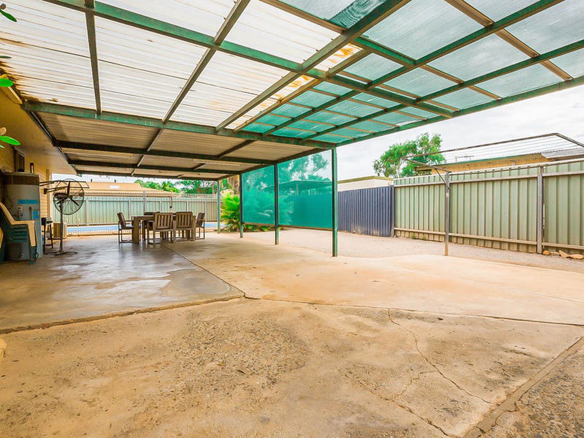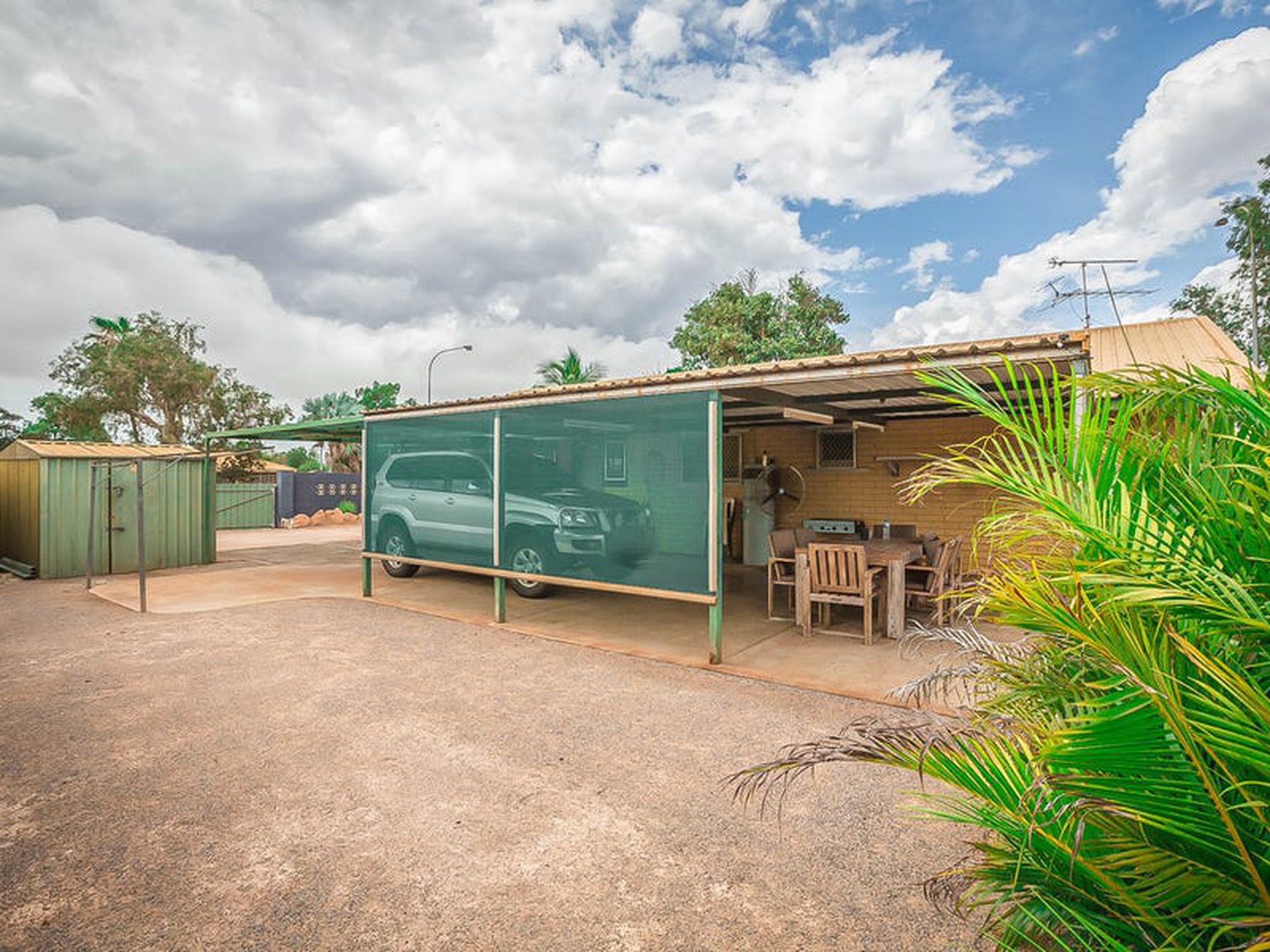 - Single undercover carport with additional storage shed and garden shed