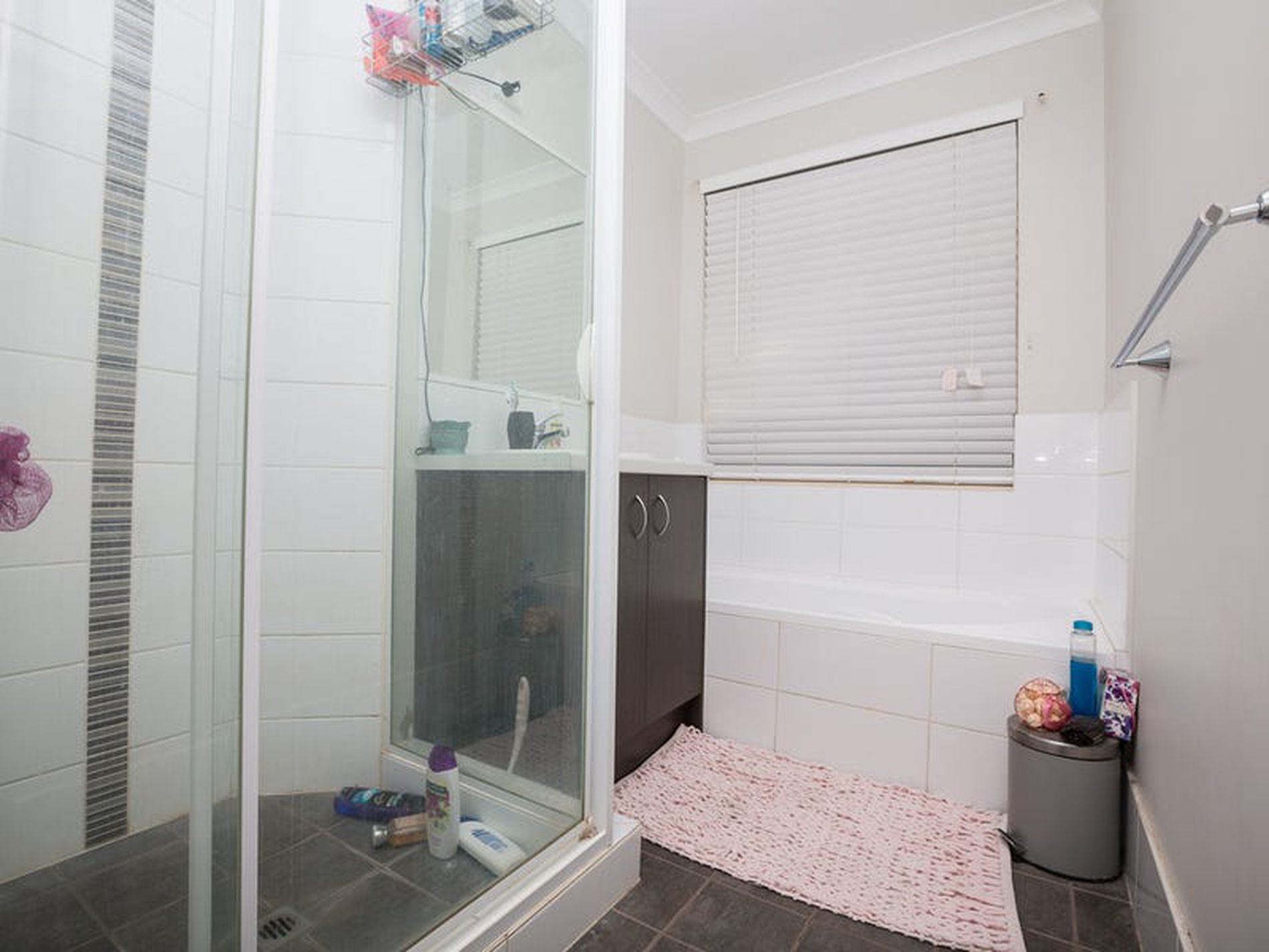 • Tidy bathroom with shower and tub