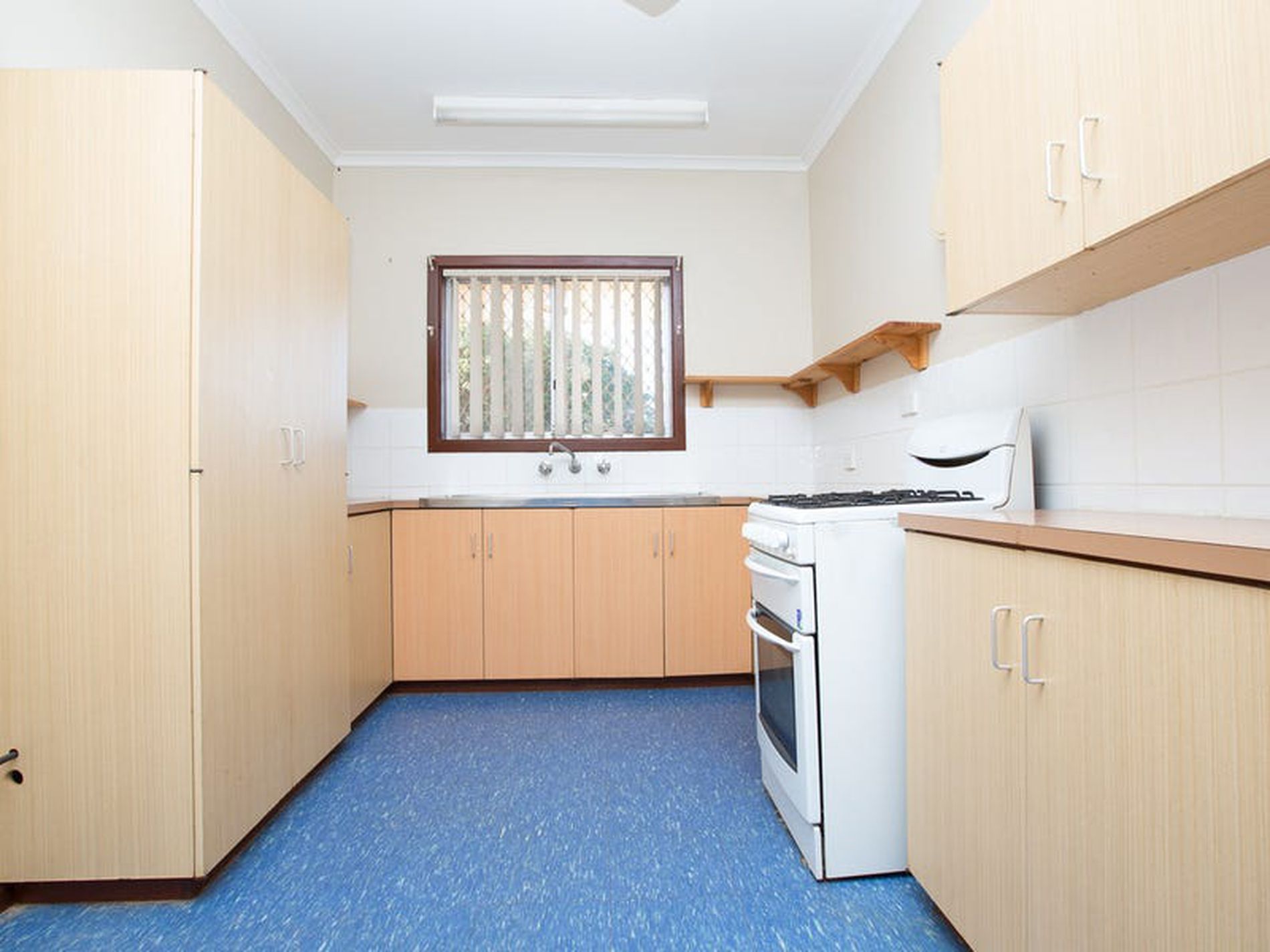 • Kitchen has gas stove & storage space