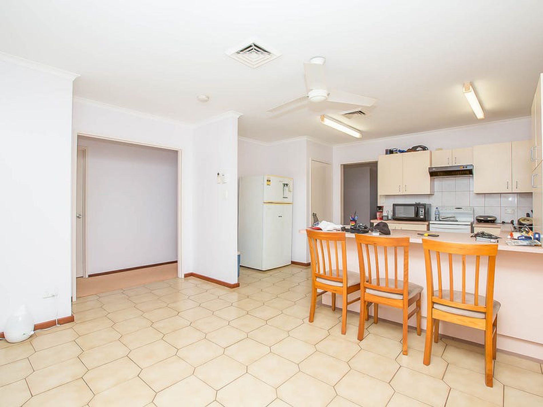 - Tidy & well-equipped kitchen featuring plentiful cupboard storage and breakfast style bench overlooking a formal dining area