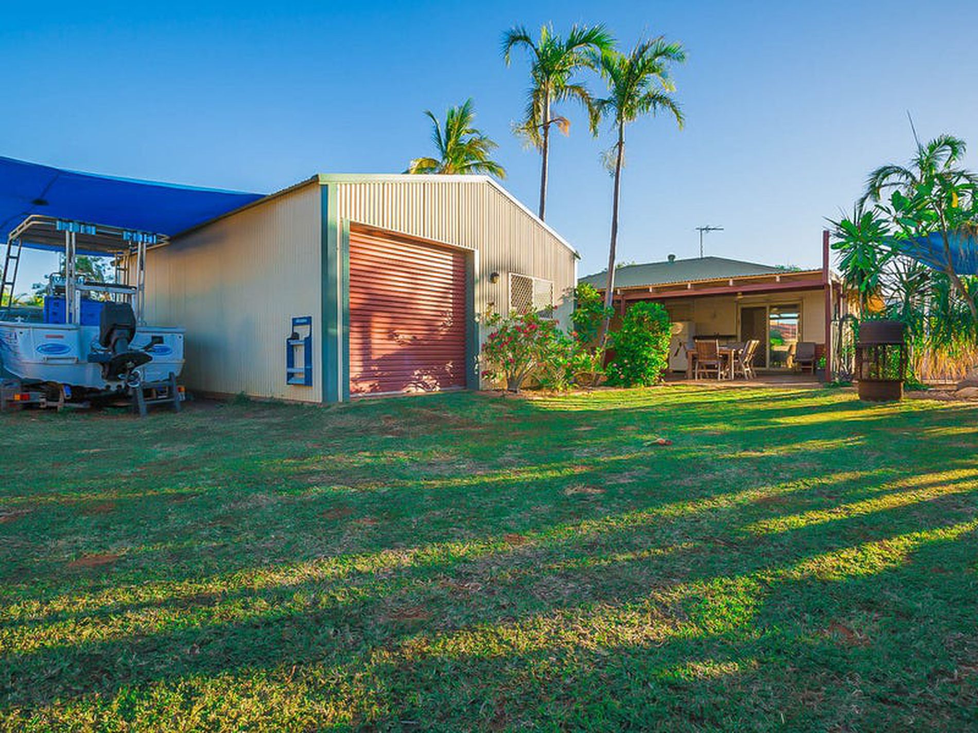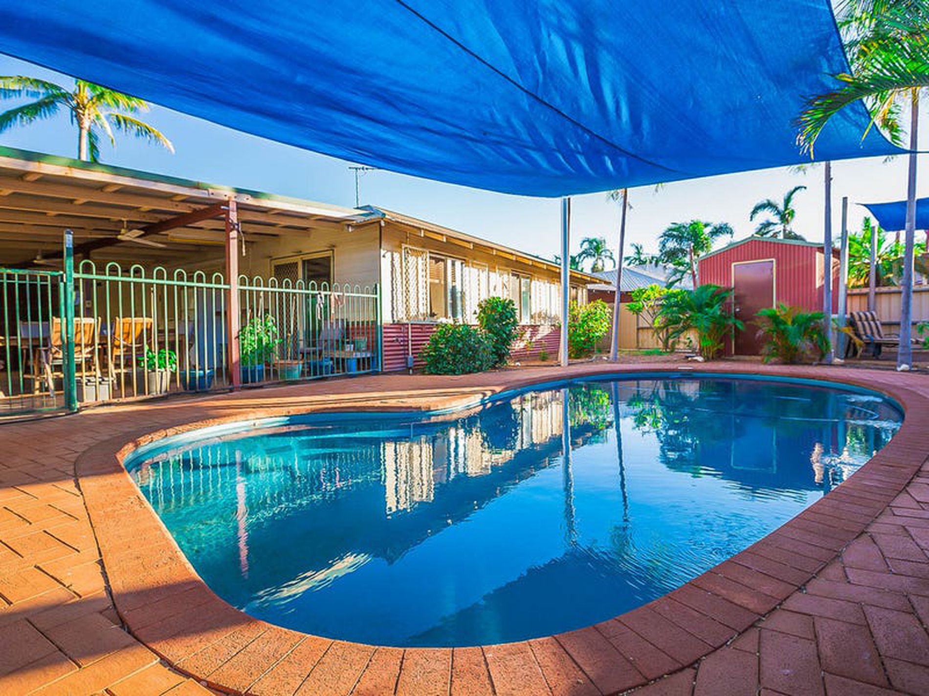 - Sparkling pool compliments large grassy yard surrounded by tropical well established gardens all serviced by reticulation