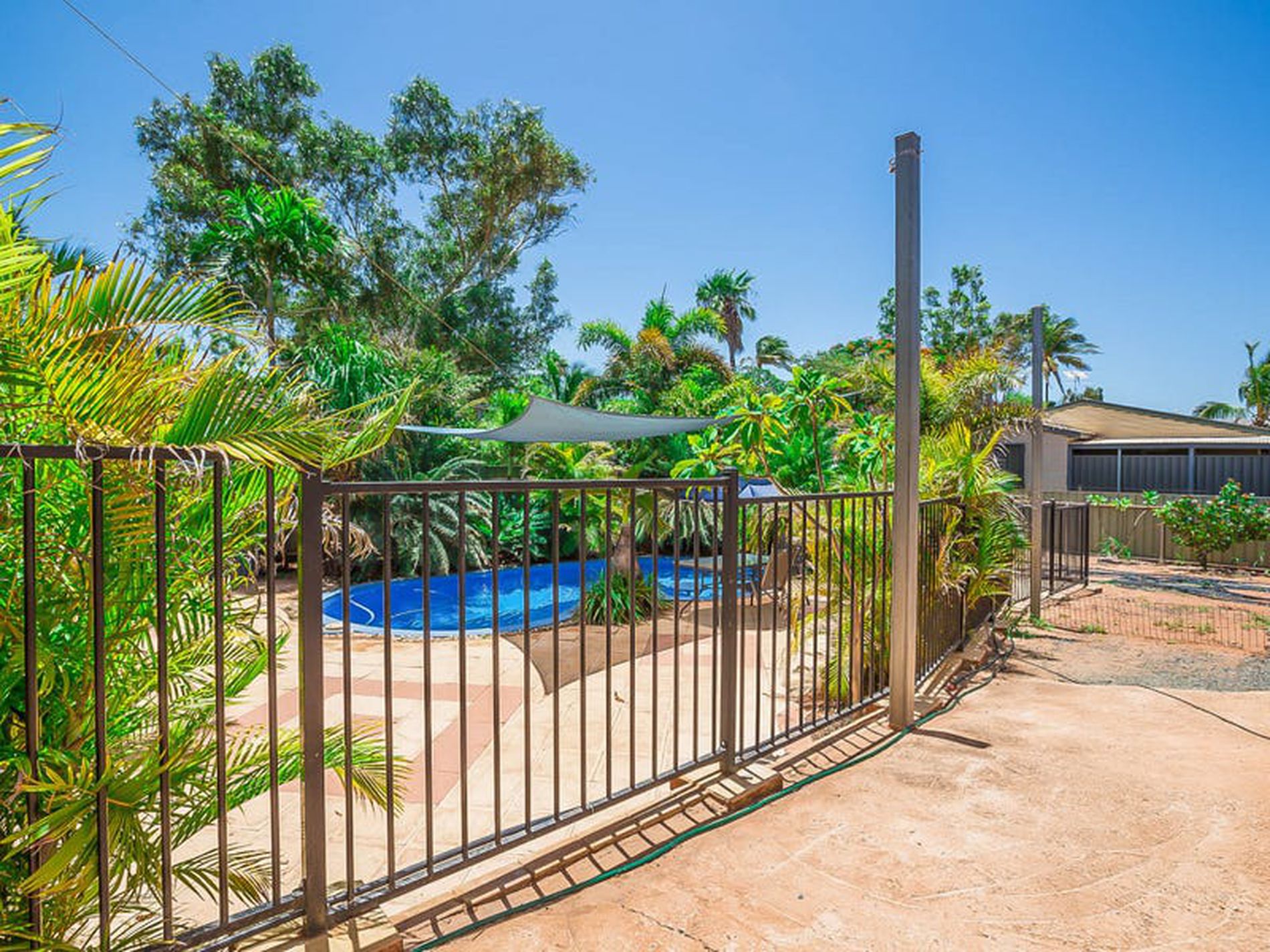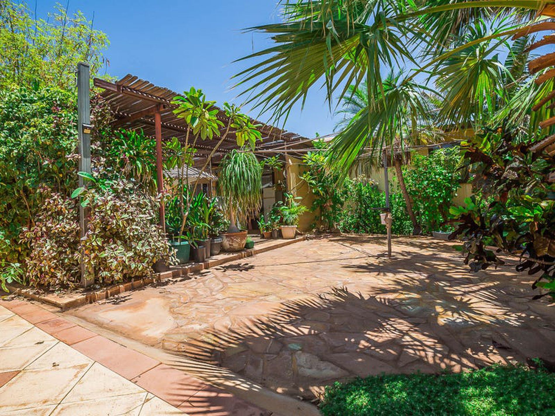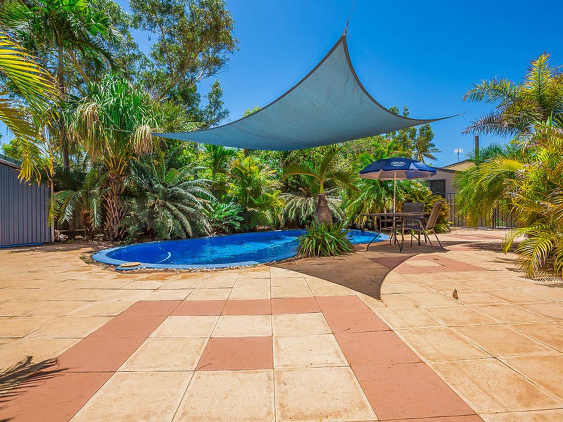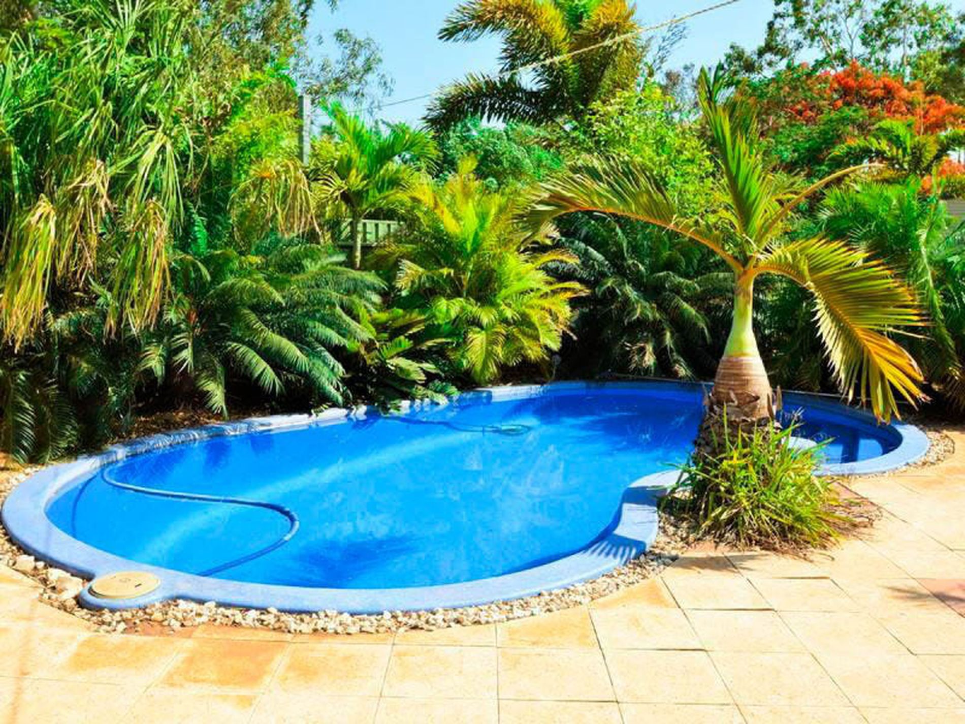 - Below ground pool featuring a private sunken paved courtyard surrounded by well established tropical palms giving a real sense of privacy and intimacy