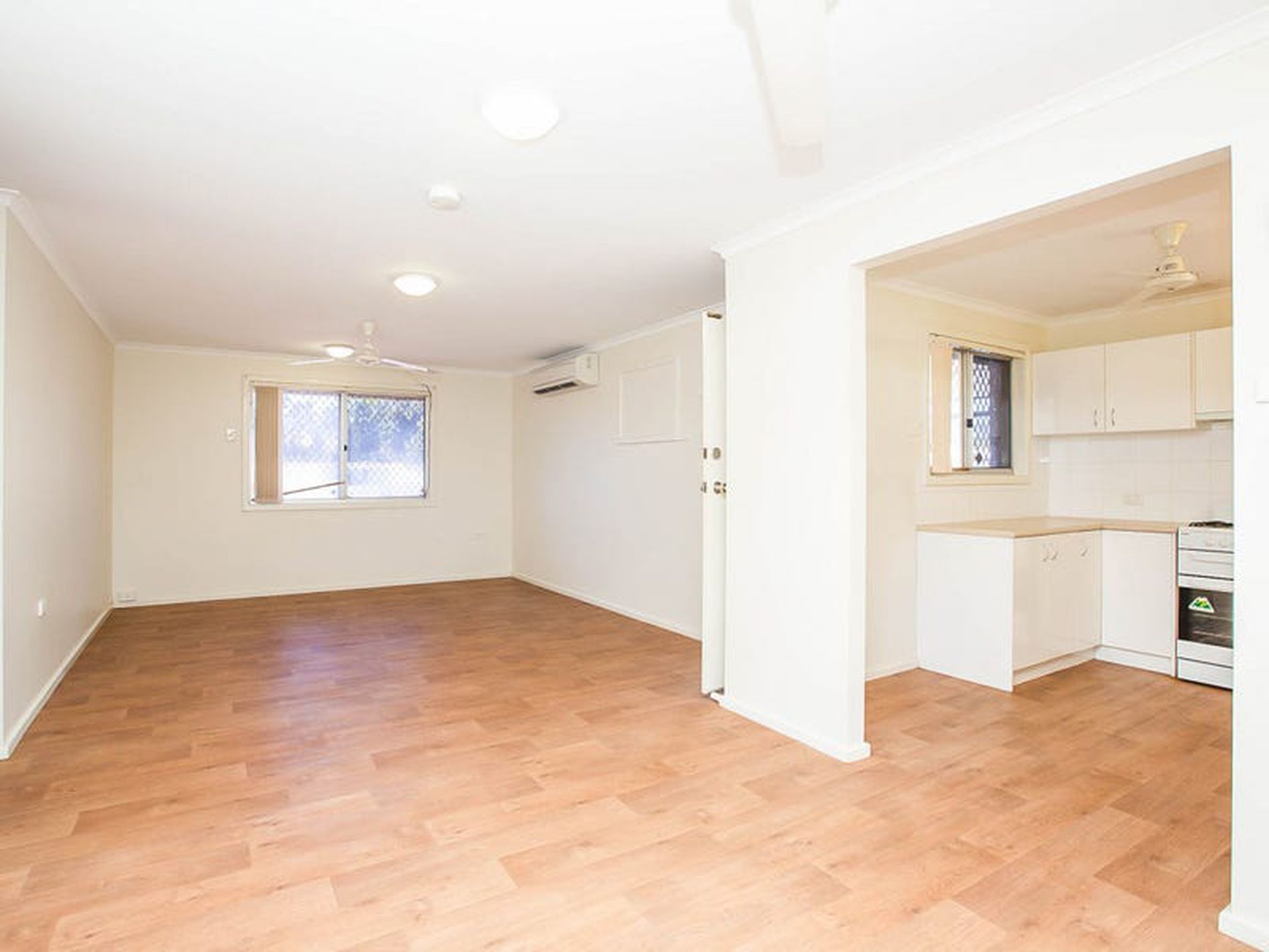 - Neural wall colors, Wood look floating floors and split system air conditioning throughout