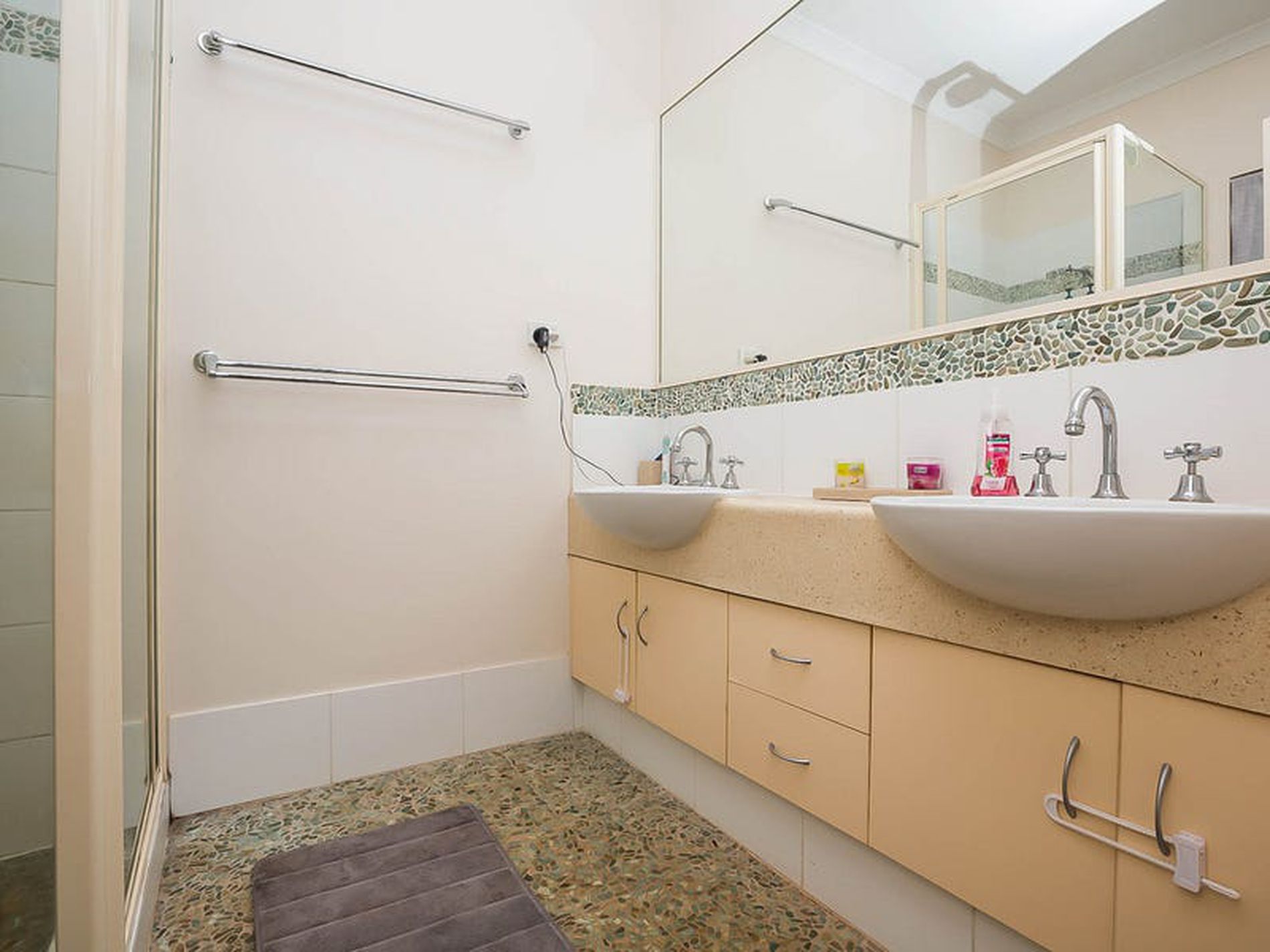 - Master bedroom offers large walk in robe and spacious ensuite with "his and hers" vanities and feature pebbled floor tiles - providing texture and a quality not typically seen in Hedland!