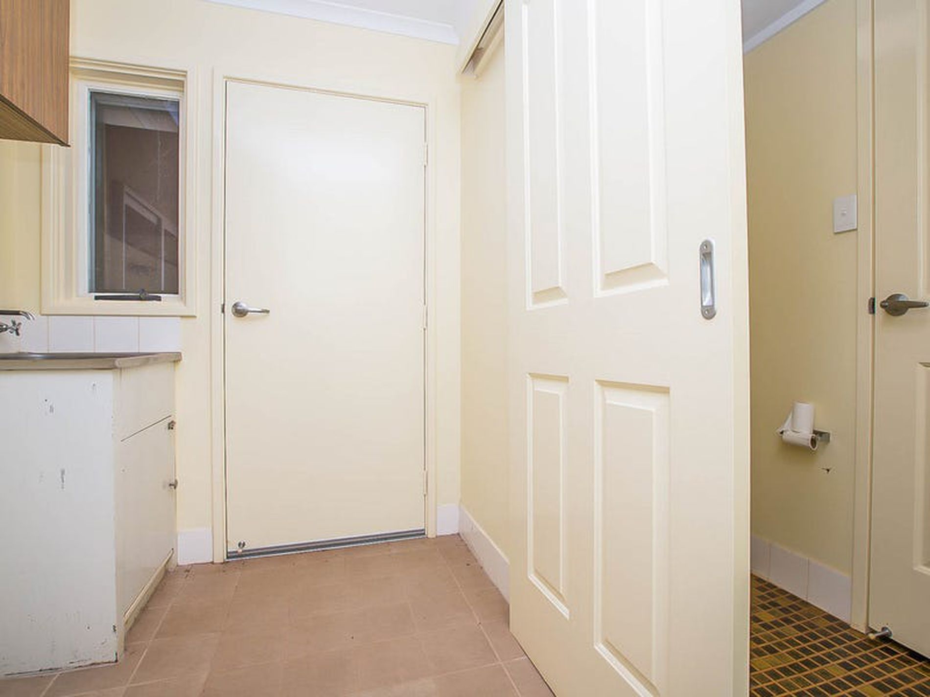 - Neutral wall paint, hardy floor tiles and window treatments throughout
