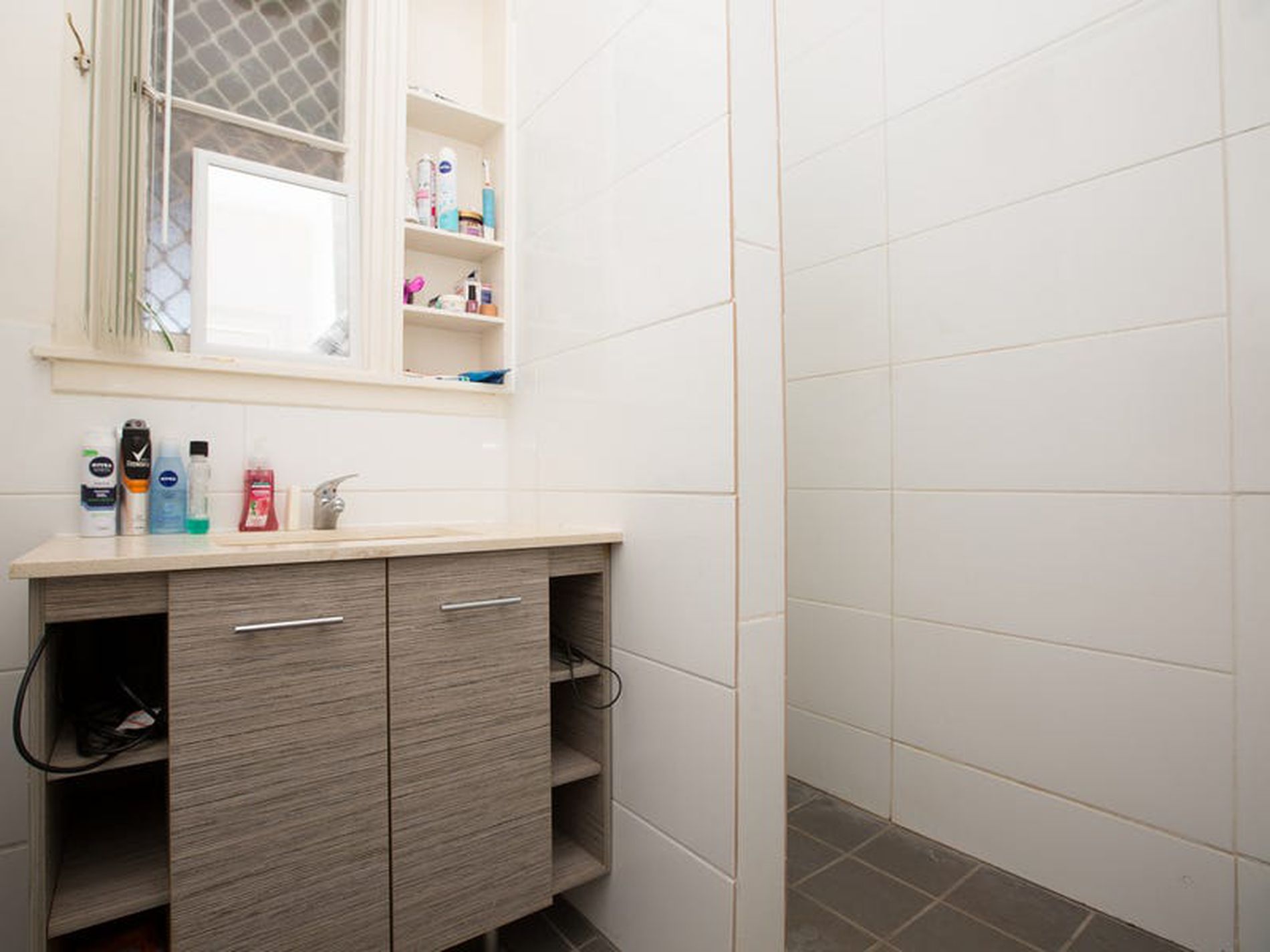 • Renovated bathroom with stylish tiling