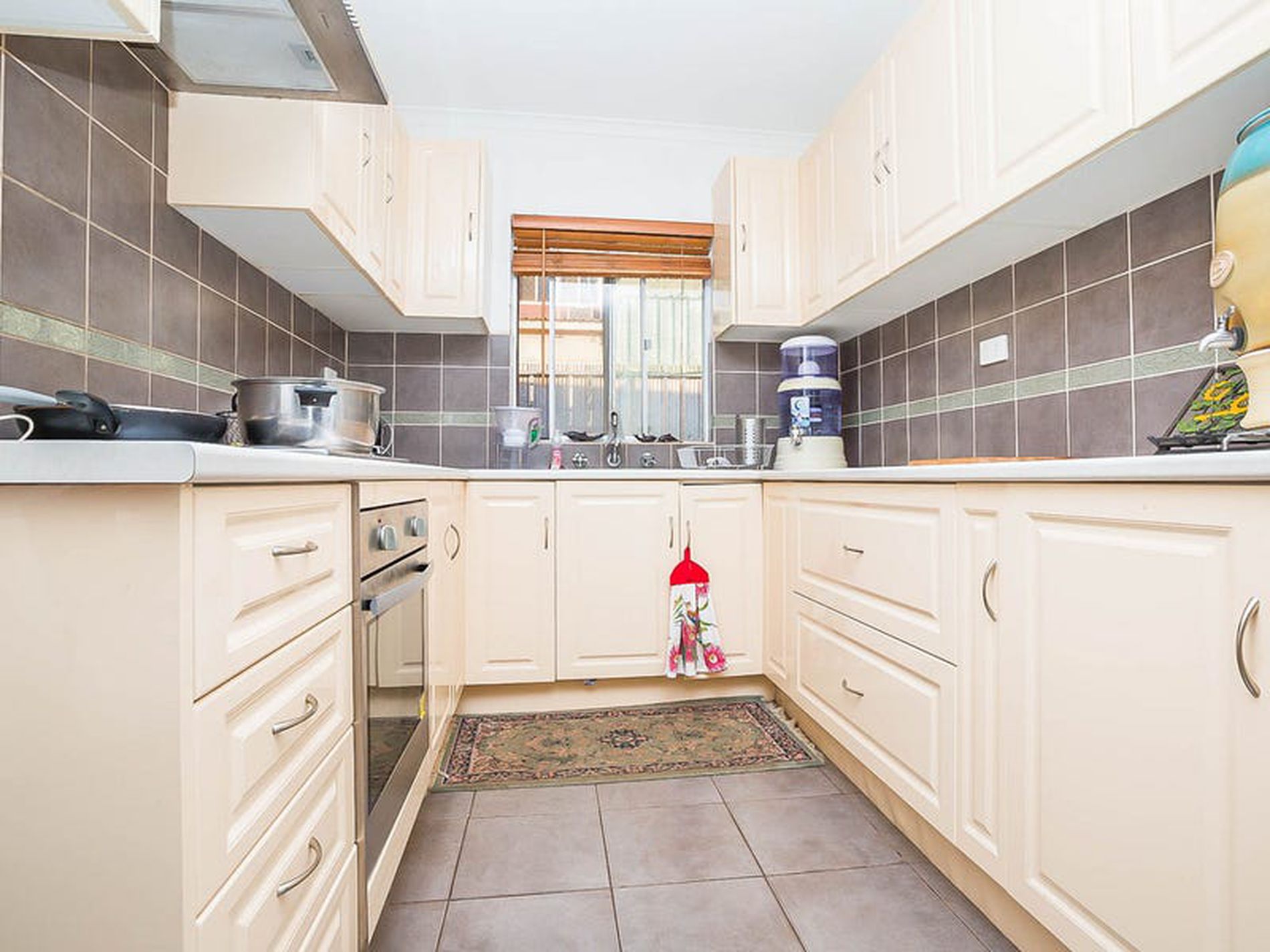 - Tiled living and kitchen areas