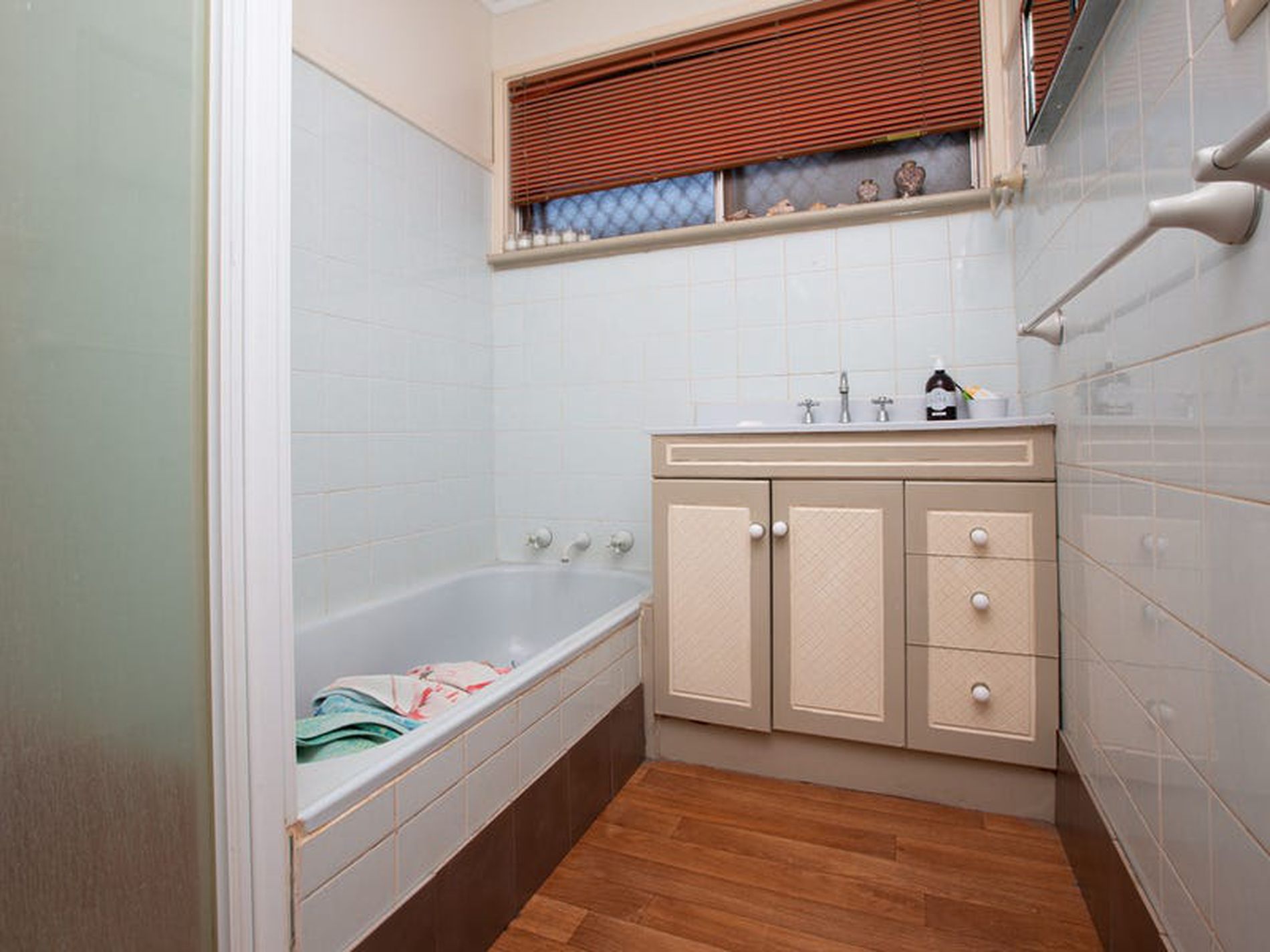 • Tiled bathroom with a tub