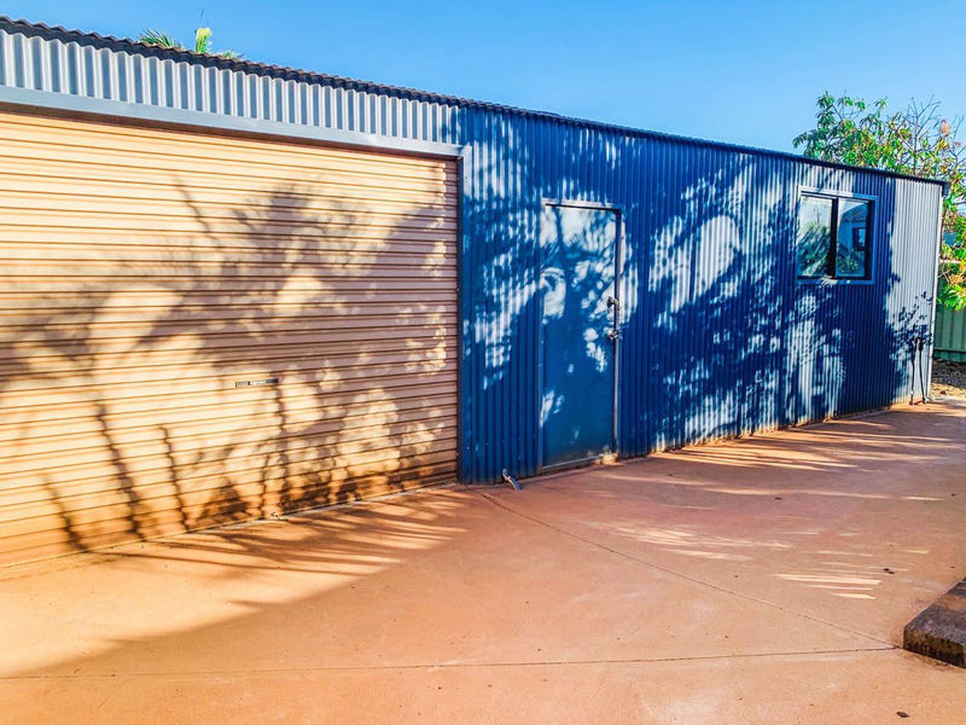 - Large powered shed perfect for storing all of dads tools and toys - two massive roller door access points
