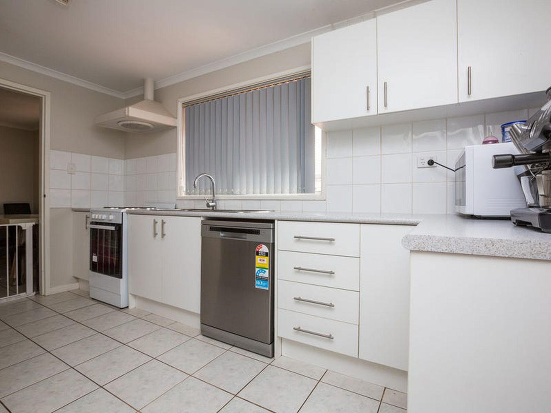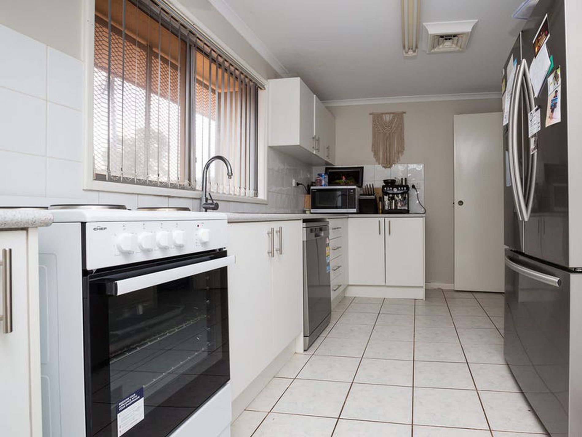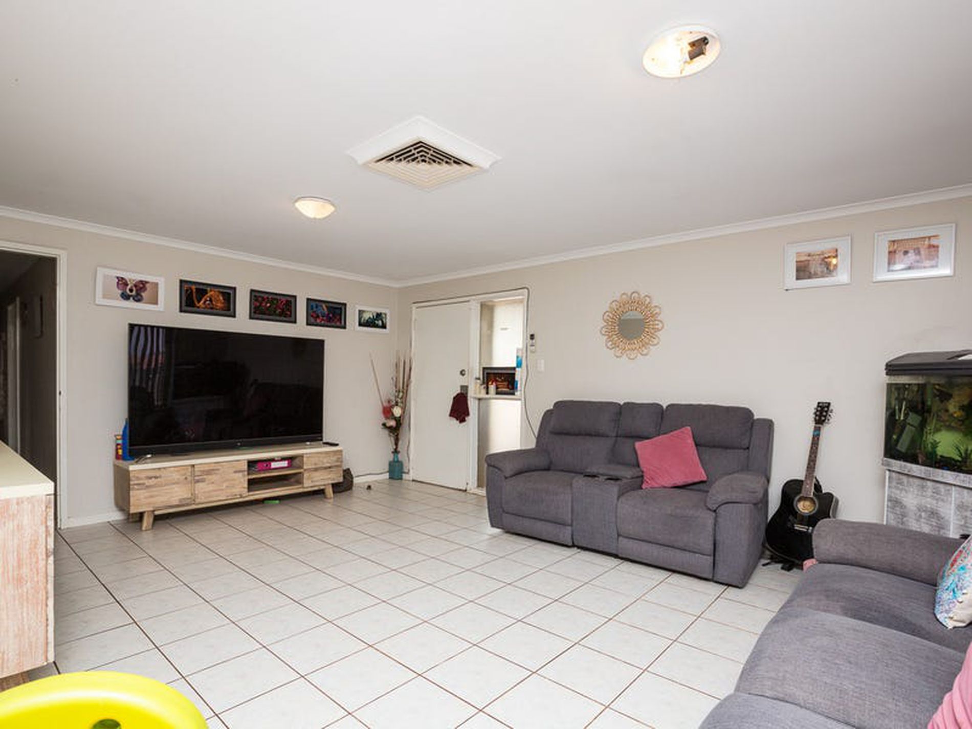 • Tiled living, kitchen and dining areas