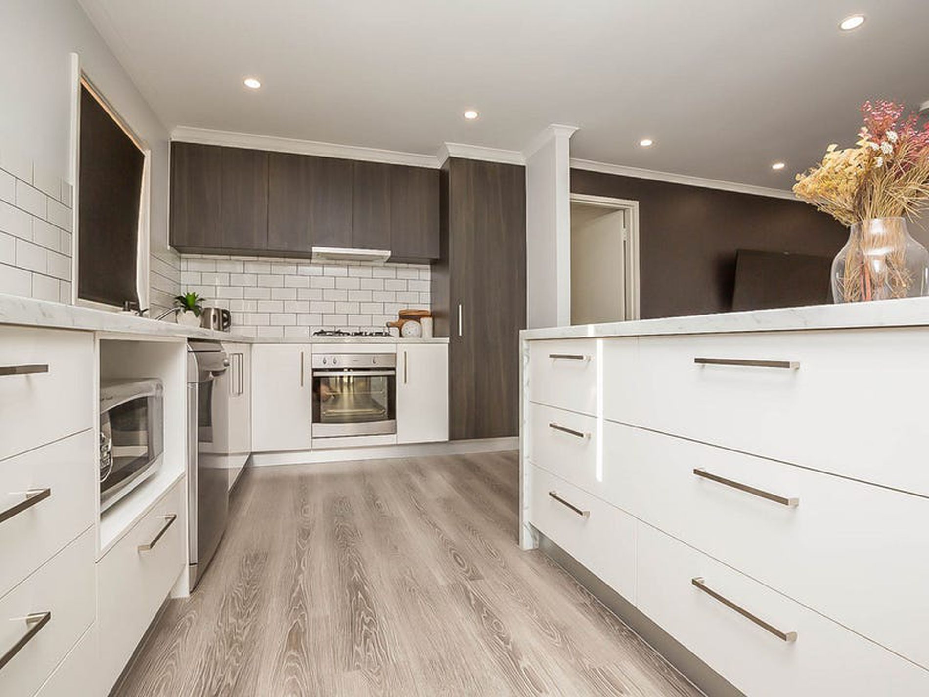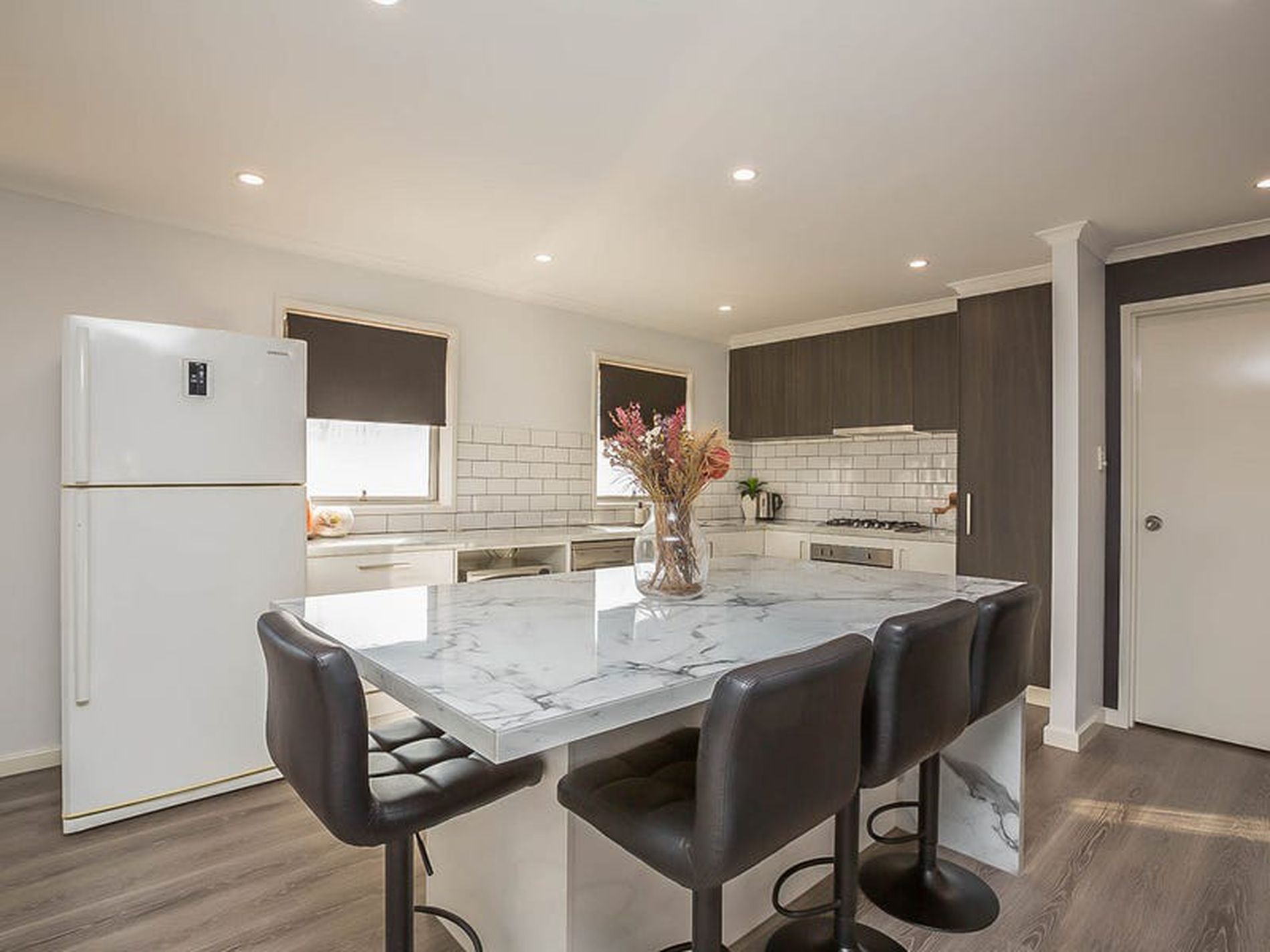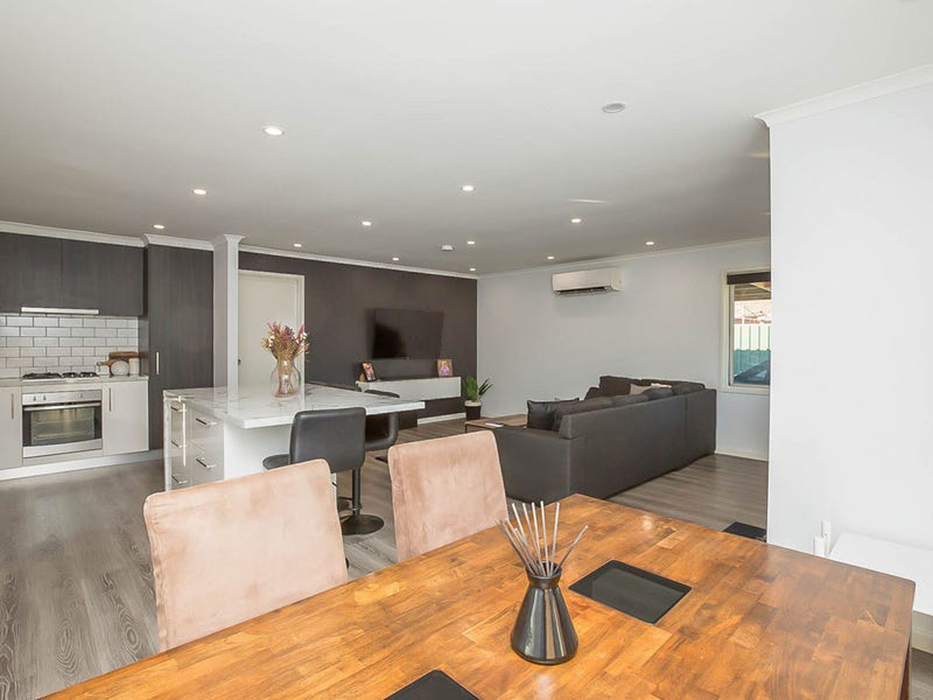 - Beautifully renovated open plan Kitchen, Dining and Living areas - complemented by modern paint colors, down lights and beautiful wood look flooring throughout!