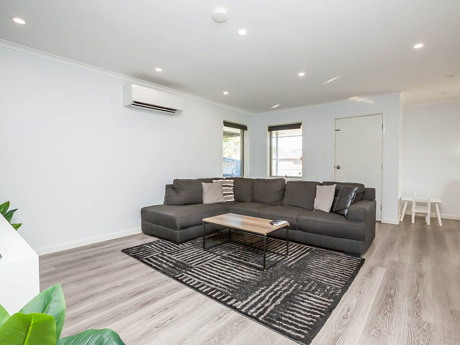 - Brand new Wood look flooring, Split System Air conditioning, fresh paint, down lights and window treatments throughout!!!