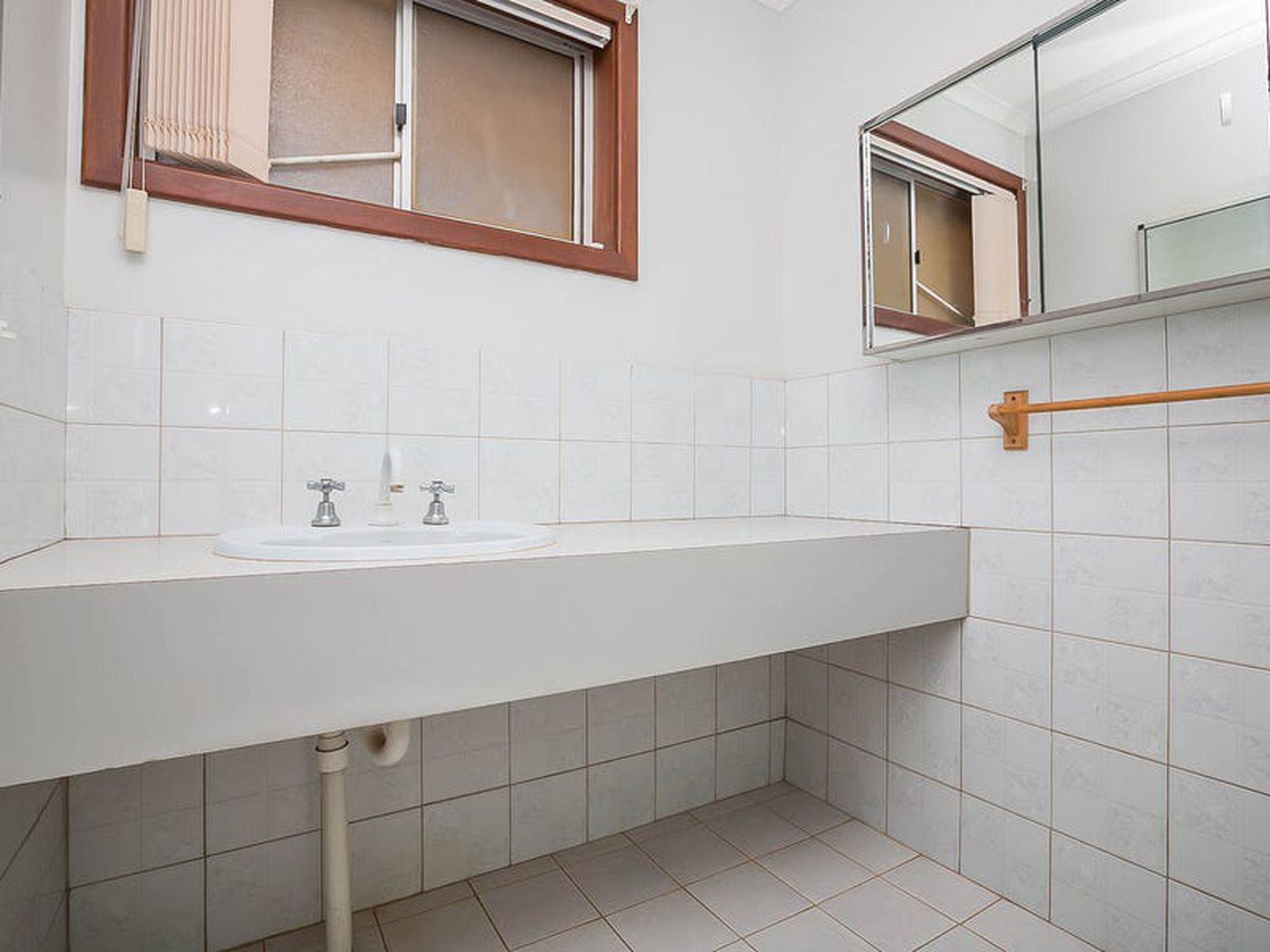 - Dated but tidy bathroom