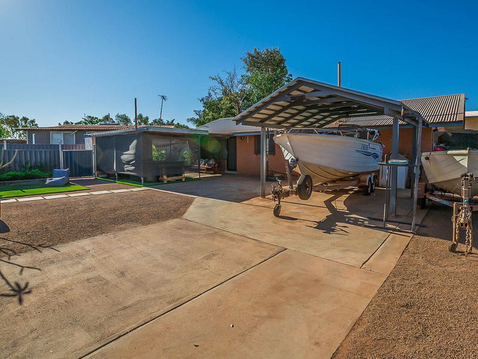 - Single undercover carport with extra room for additional parking of cars, boats, caravans etc
