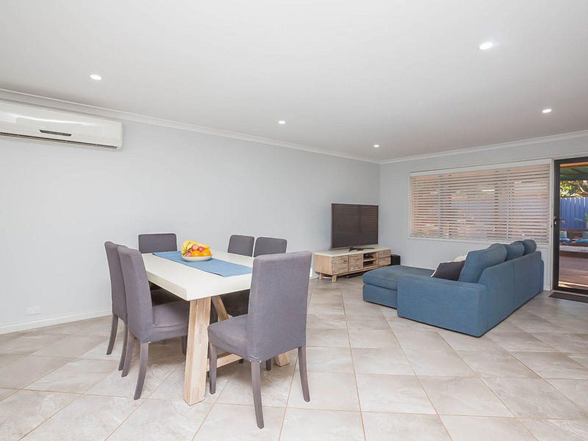 - Large open plan living and dining areas