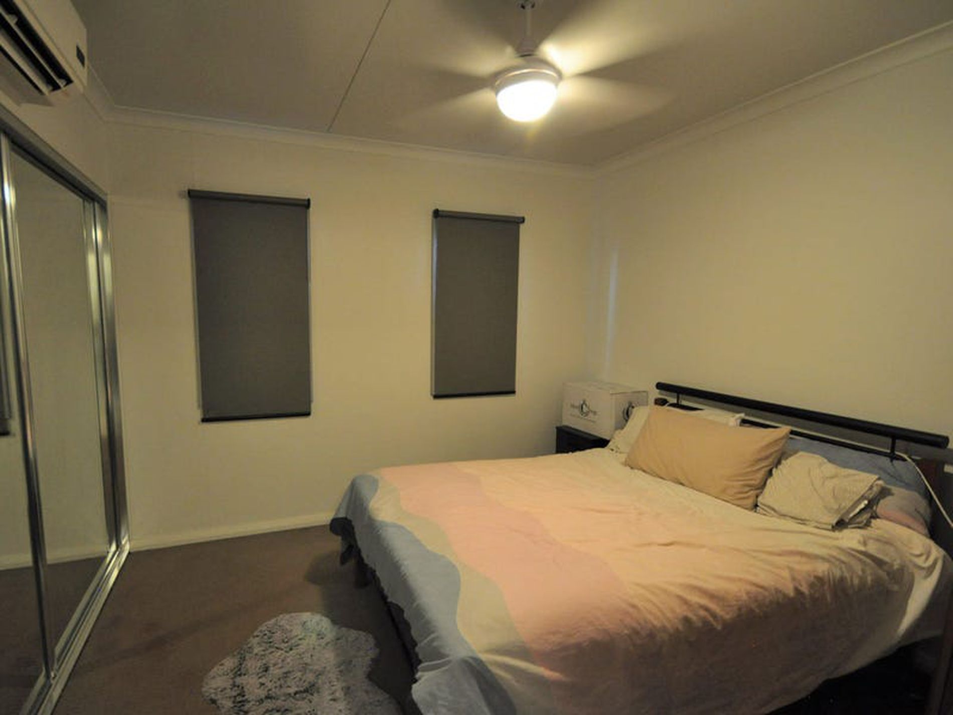 · Carpet flooring in bedroom, split air conditioning and ceiling fan, plus a large separate BIR