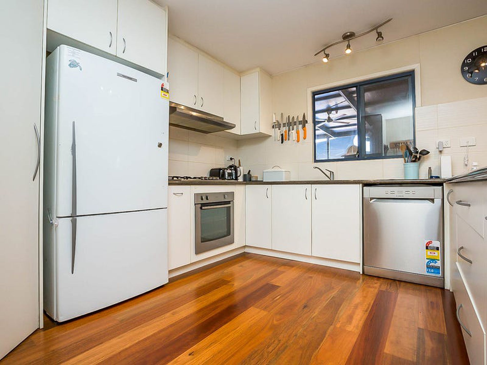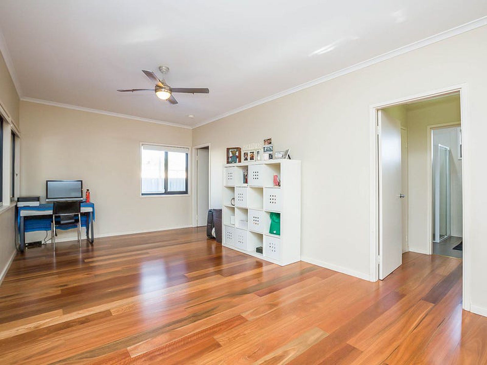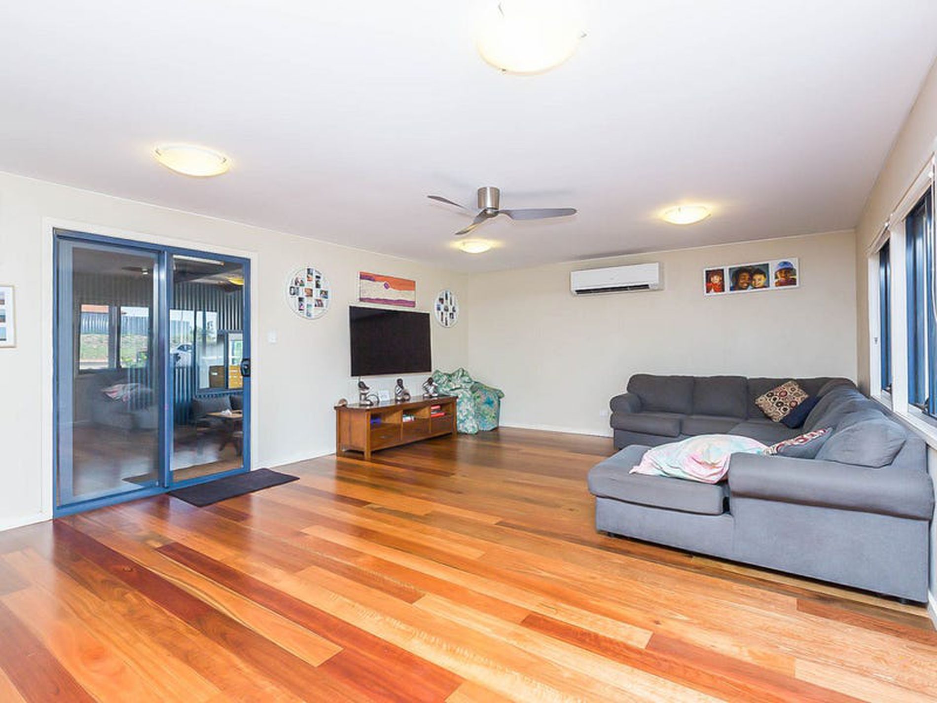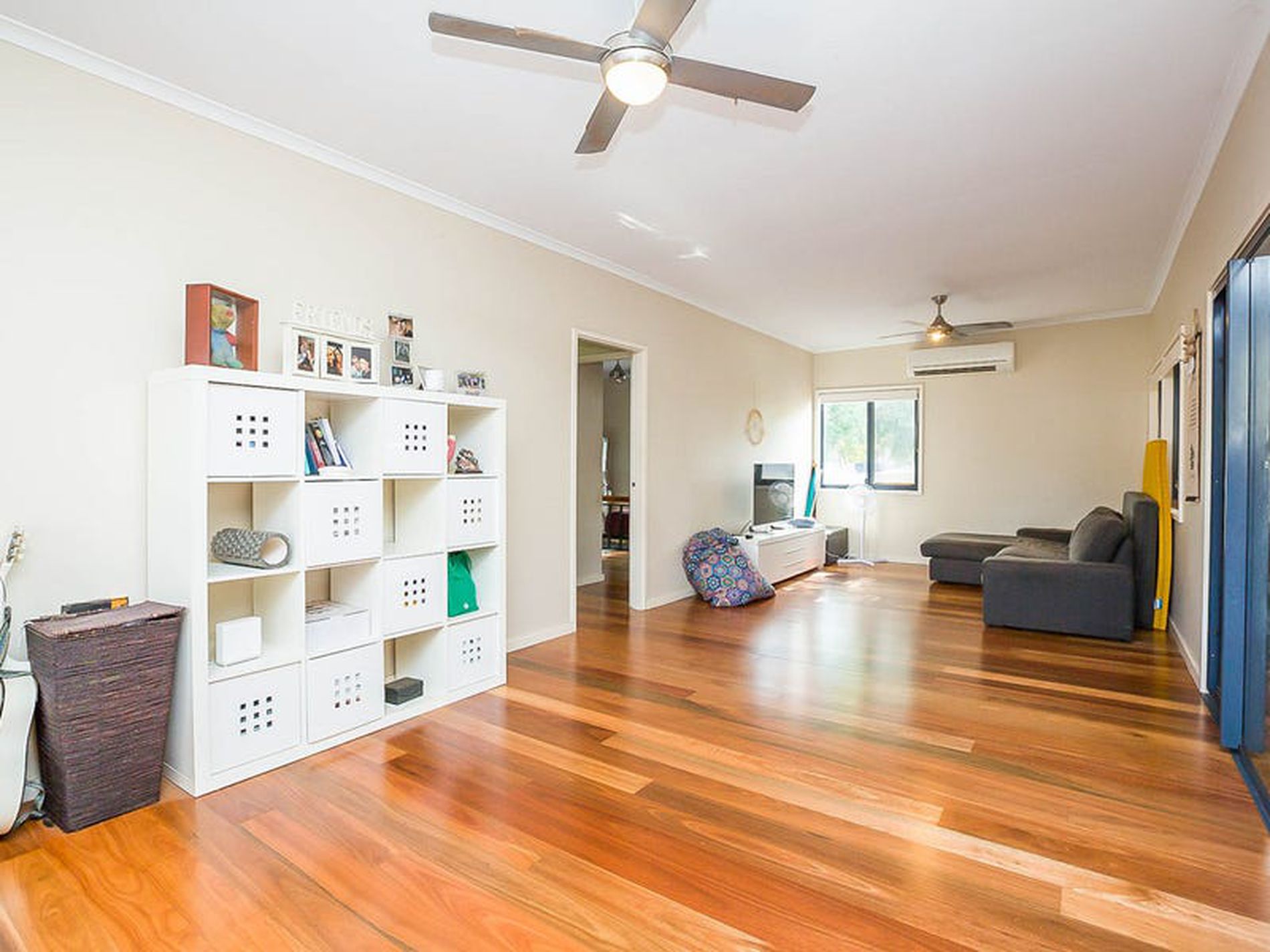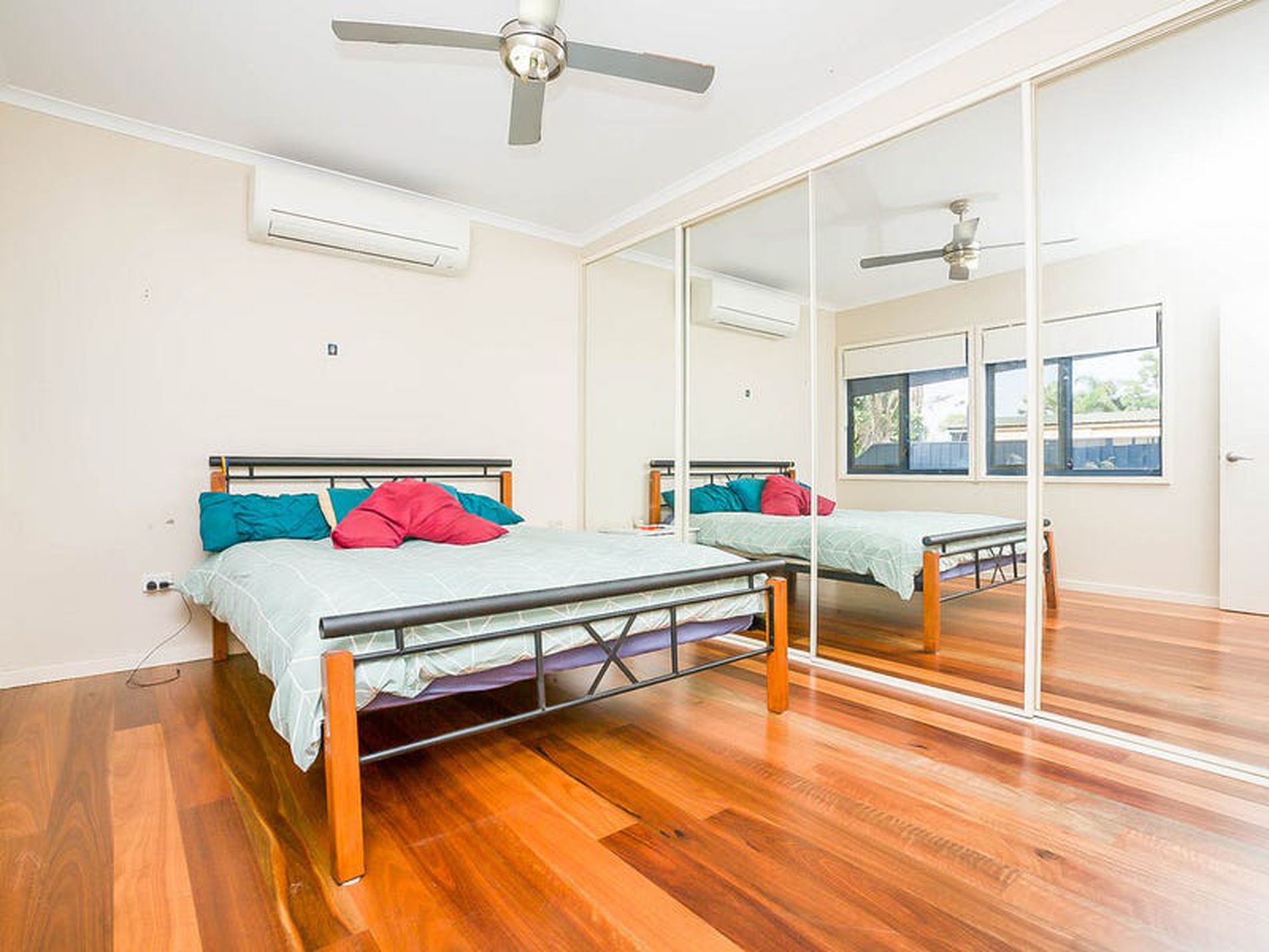 - Reverse cycle split air conditioners and ceiling fans keep the home beautifully cool all year round