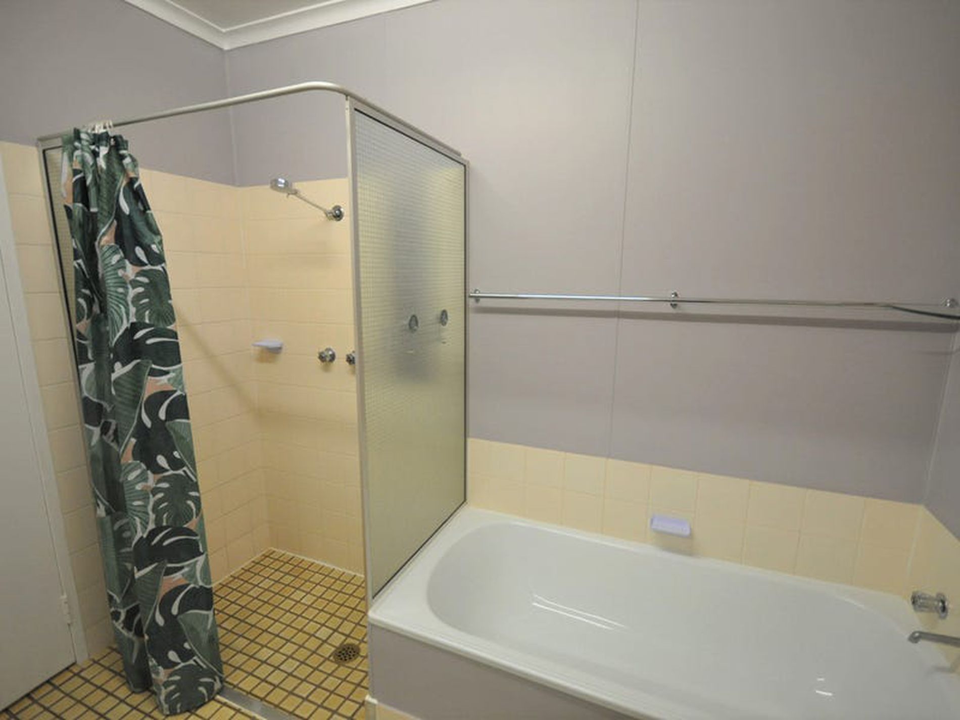 • Functional bathroom with shower and bathtub